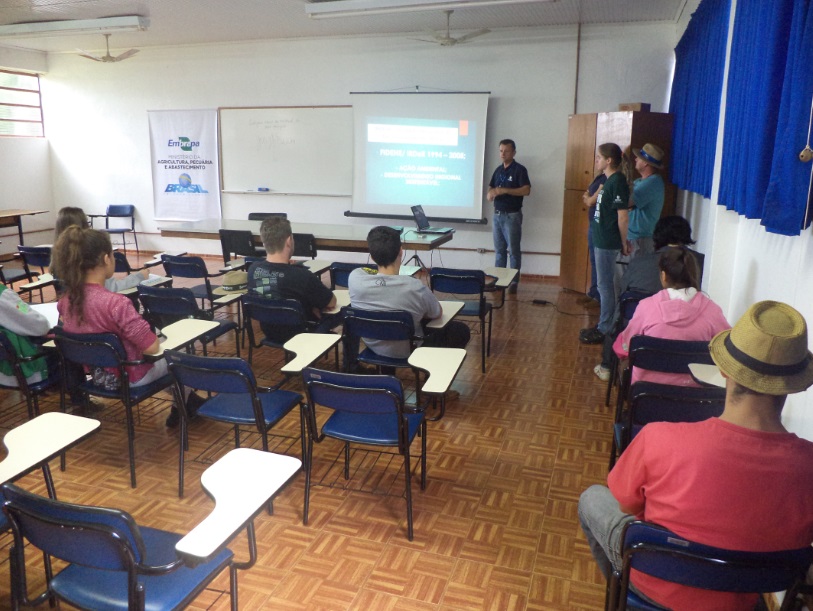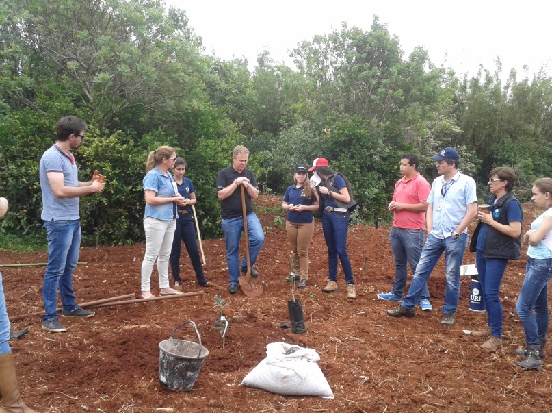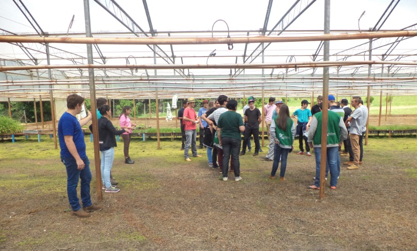O gerente do IRDeR, Eng. Agrônomo Cesar Sartori, recepcionou a turma e falou sobre o histórico do IRDeR, as atividades realizadas, as parcerias e o quadro de colaboradores. Os alunos visitaram a produção leiteira, as áreas de pastagens, a horta e o viveiro. O Viveiro de mudas do IRDeR é um dos maiores da América Latina, chegando a produzir mais de 2 milhões de mudas de espécies arbóreas nativas e exóticas em um ano. Atualmente o viveiro trabalha abaixo da capacidade, em função da demanda ser menor. Os alunos também conheceram o equipamento chamado “penetrômetro”, o qual é utilizado para determinar o grau de compactação do solo. Dessa forma, os objetivos da visita foram atingidos, pois os alunos puderam relacionar as práticas do IRDeR com as disciplinas vistas em sala de aula.