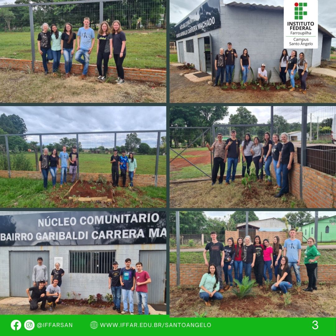 Para realizar a integração dos espaços construtivos com a natureza e transformá-los para a vivência e convivência, no dia 05 de dezembro do corrente ano, os estudantes do 1º ano do curso Técnico em Agricultura do IFFar - Campus Santo Ângelo, estiveram no Núcleo Comunitário Bairro Garibaldi Carrera Machado (Indubras), para aplicar conceitos e técnicas do paisagismo.