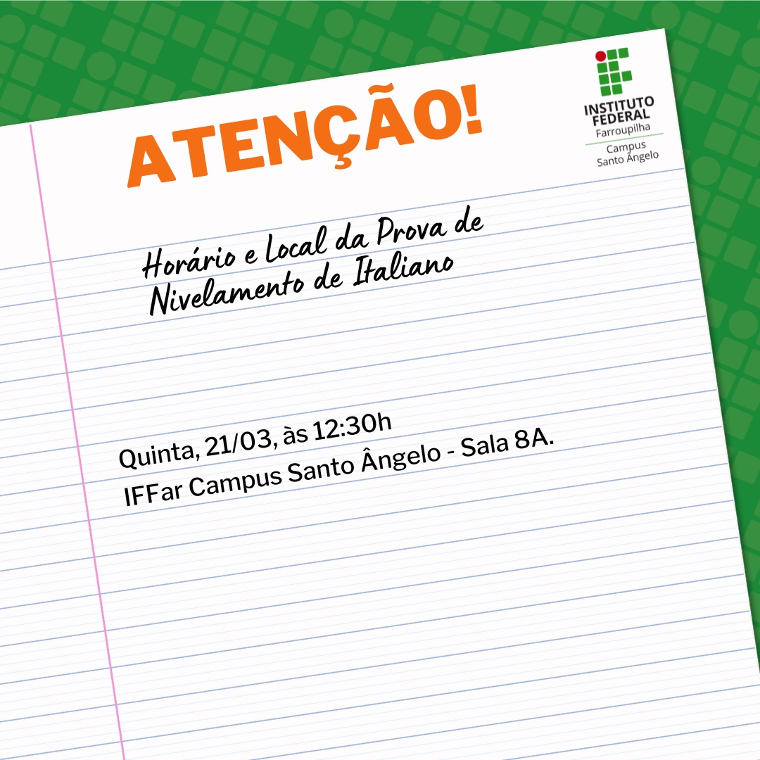 Horário e Local da Prova de Nivelamento de Italiano: