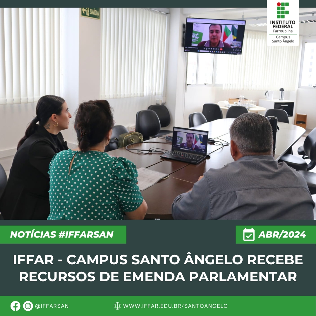 No decorrer dos últimos anos, a partir de interlocução da Gestão do Campus Santo Ângelo junto a Parlamentares da Bancada Gaúcha no Congresso Nacional, na busca de recursos extraorçamentário de emendas parlamentares visando a qualificação dos espaços pedagógicos, em reunião realizada na Reitoria do IFFar, no dia 09/04/2024, frutificou-se resultados com a formalização da indicação/destinação de recurso de emenda parlamentar da Dep. Fed. Denise Pessôa (PT/RS), no valor de R$ 100.000,00 (cem mil reais) para o Campus Santo Ângelo.