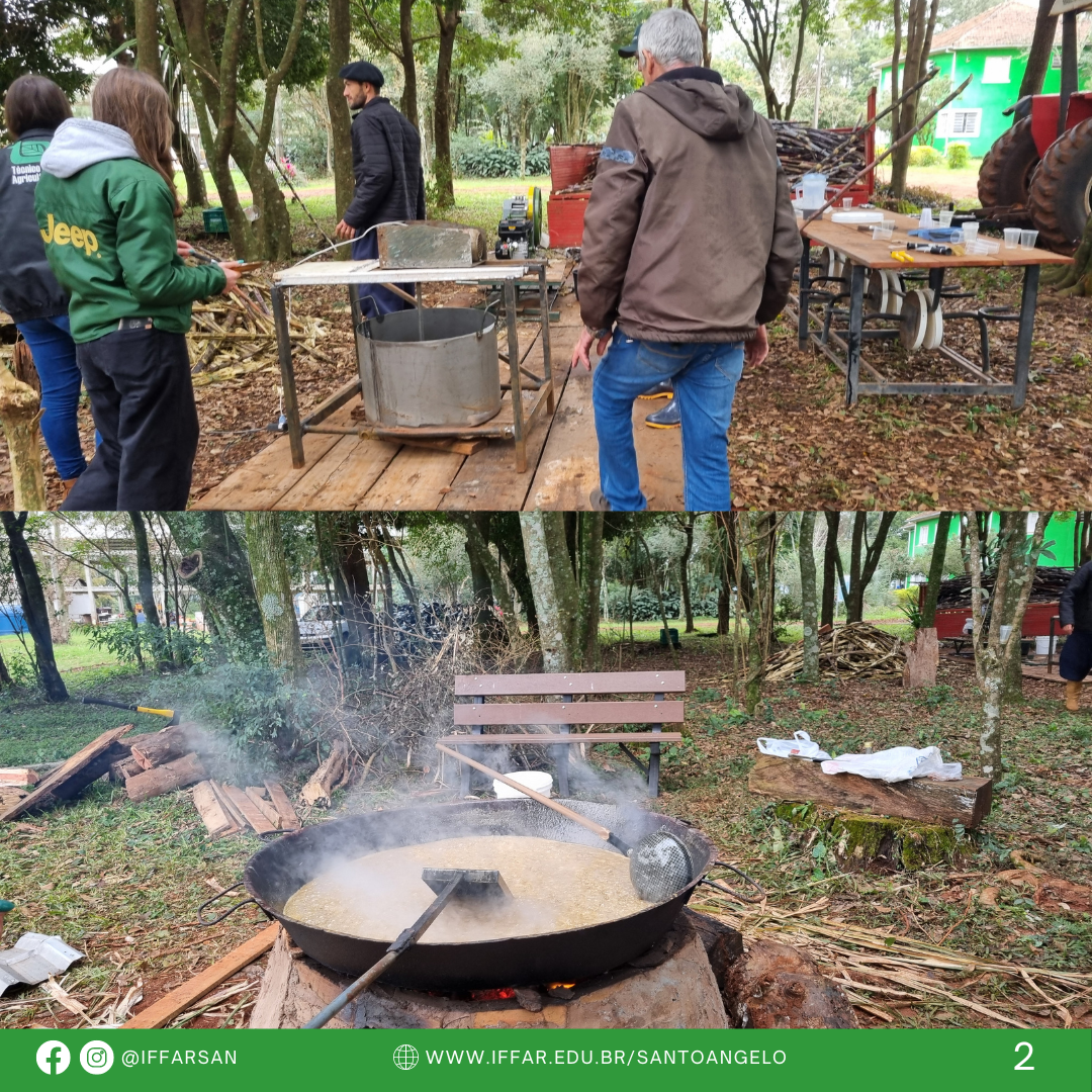 Na última semana aconteceu no IFFar campus Santo Ângelo o II Dia de campo sobre a cultura da cana-de-açúcar, evento que também pautou o encerramento da IV Semana Municipal da Agricultura Familiar de Santo Ângelo, organiza pelo COMDASA, APROCHOSA e Secretária Municipal do Desenvolvimento Rural. O evento contou com a participação de lideranças locais, agricultores, alunos, servidores do IFFar e a presença da Agroindústria de Melado Pedó e a Cachaçaria 2 Chicos.
