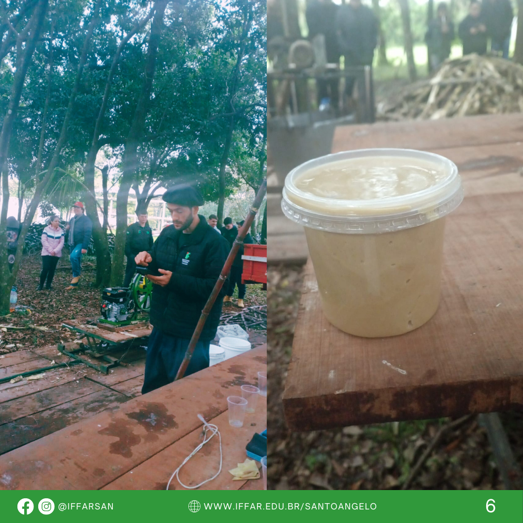 Os participante tiveram a oportunidade de conhecer diferentes variedades de cana (12 estão sendo trabalhadas em pesquisa na Instituição), a importância do grau BRIXº, época de maturação, sistema de moagem, produção de melado (apoio do agricultor Elói Schink), batedor elétrico adaptado, conhecer e trocar informações com agroindústrias locais e ainda para acompanhar a visita degustaram uma boa guarapa.