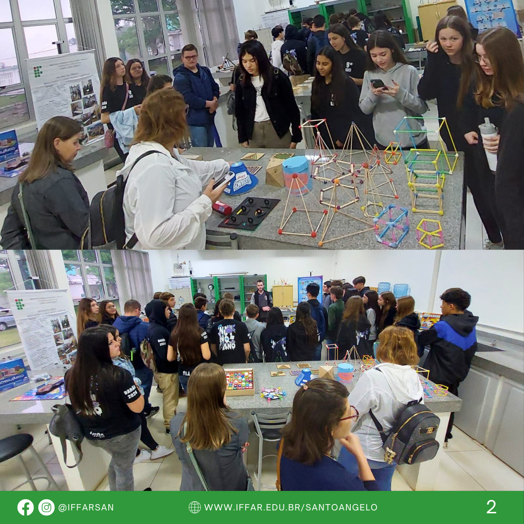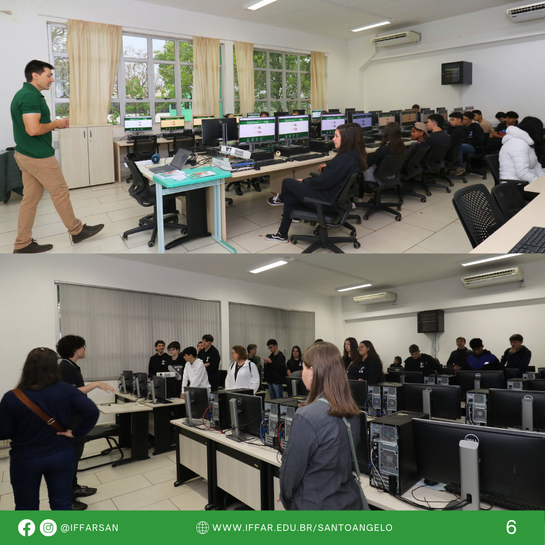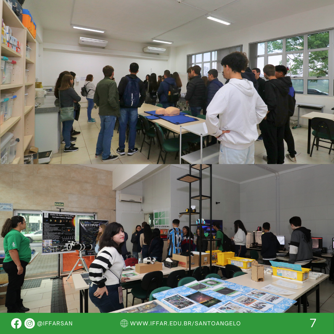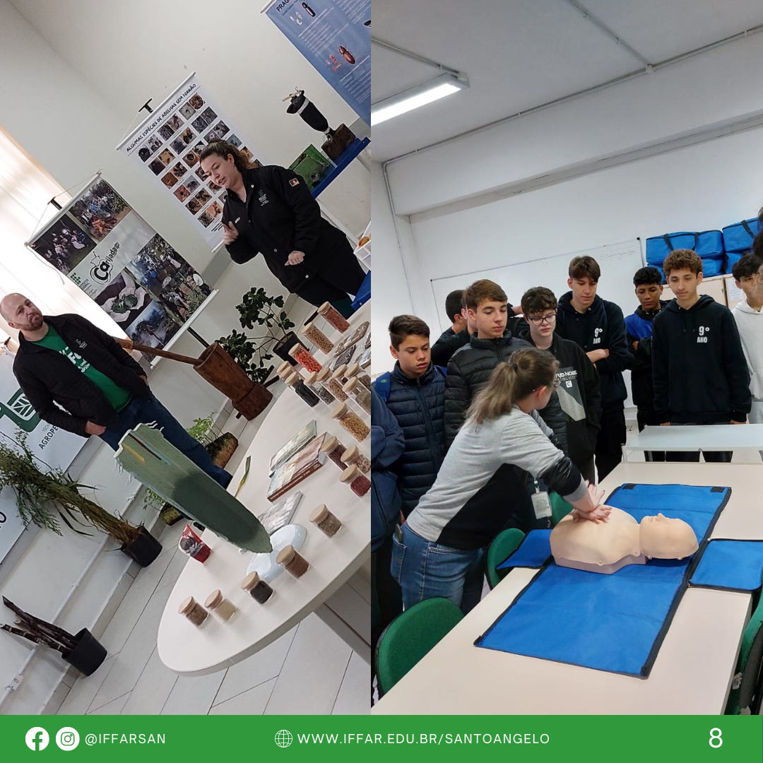 Os estudantes tiveram a oportunidade de conhecer a estrutura física do IFFar, os laboratórios de Matemática e Física, Biologia, Química, Maker, Hardware, Informática, Estética e Enfermagem, além das salas de aula, centro de convivência e biblioteca. Também puderam saber mais sobre os cursos técnicos integrados ao Ensino Médio ofertados pelo Campus (Informática, Administração e Agropecuária), a organização curricular, área de atuação e os projetos de ensino, pesquisa e extensão desenvolvidos por cada um deles. Ainda foram apresentados os serviços oferecidos pela assistência estudantil e os passos necessários para realizar a inscrição no Processo Seletivo 2025.
