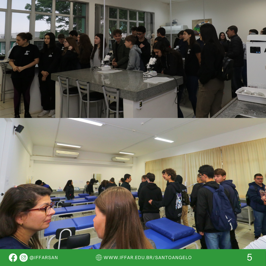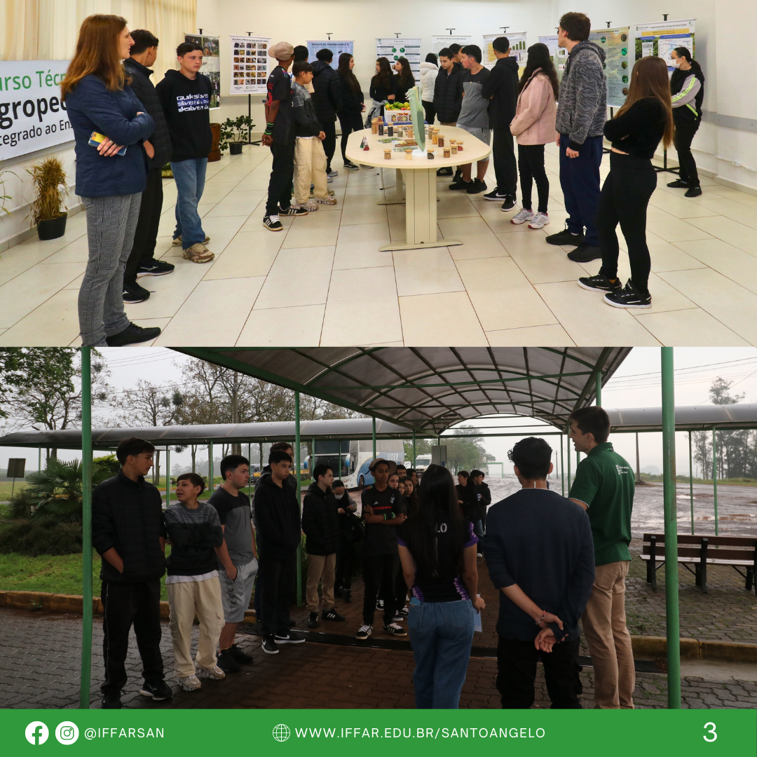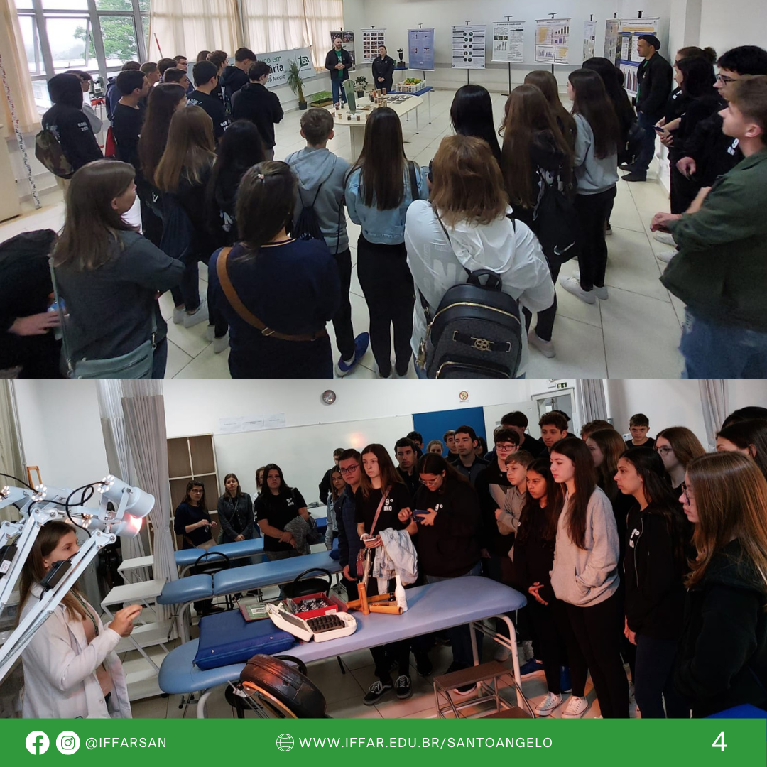 Na manhã da última terça-feira, dia 08/10, o IFFar-SAN recebeu escolas de Santo Ângelo e região em mais uma edição do evento “Conhecendo o IFFar”. Na ocasião, mais de 300 estudantes de 9º ano e professores de escolas municipais e estaduais realizaram uma visita aos diferentes espaços da instituição, guiados por servidores e alunos.