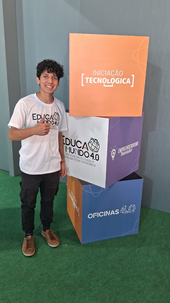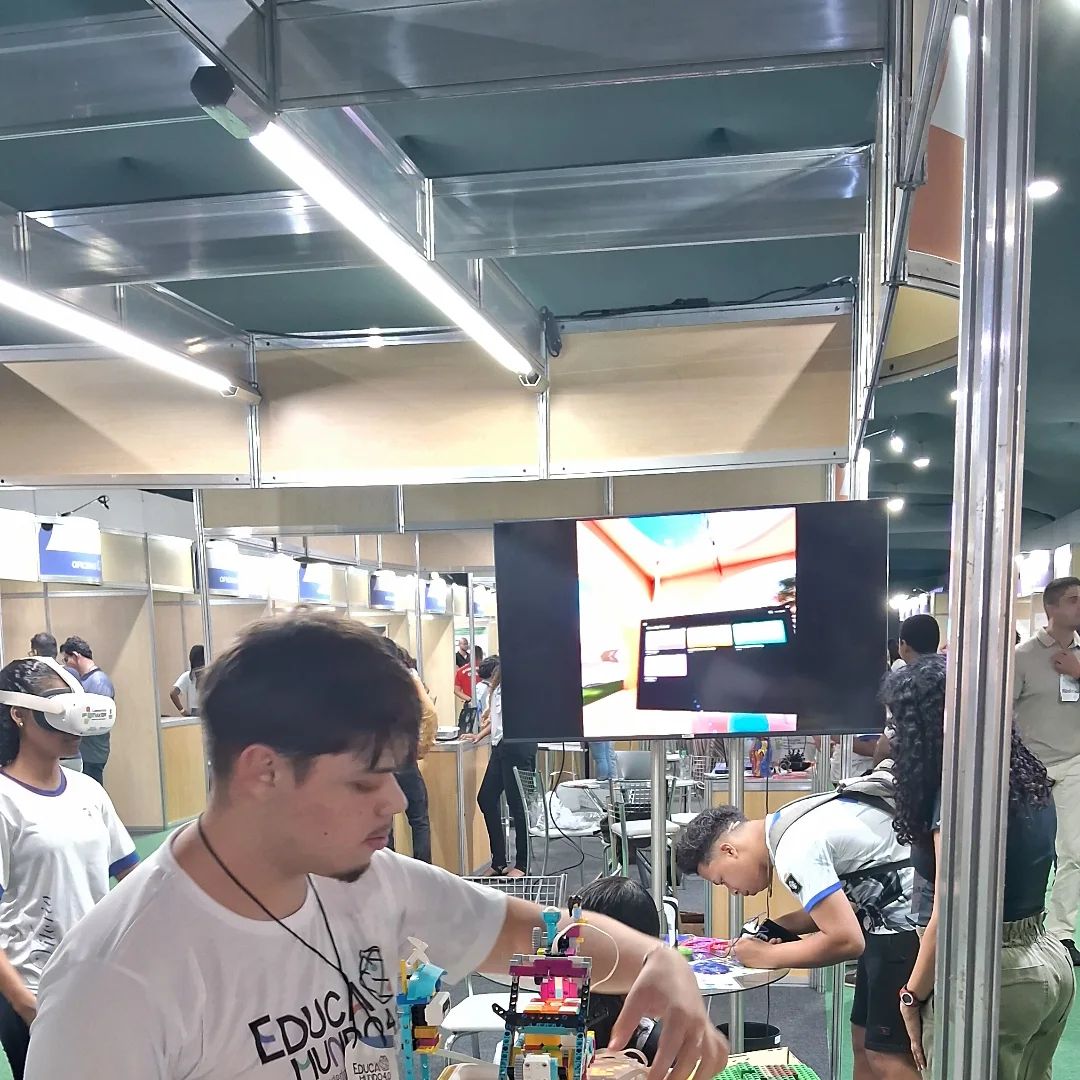 Servidora e estudantes do Laboratório IF-Maker do IFFar-SAN participam do evento EducaMundo 4.0, em Vitória-ES apresentando os projetos desenvolvidos na instituição