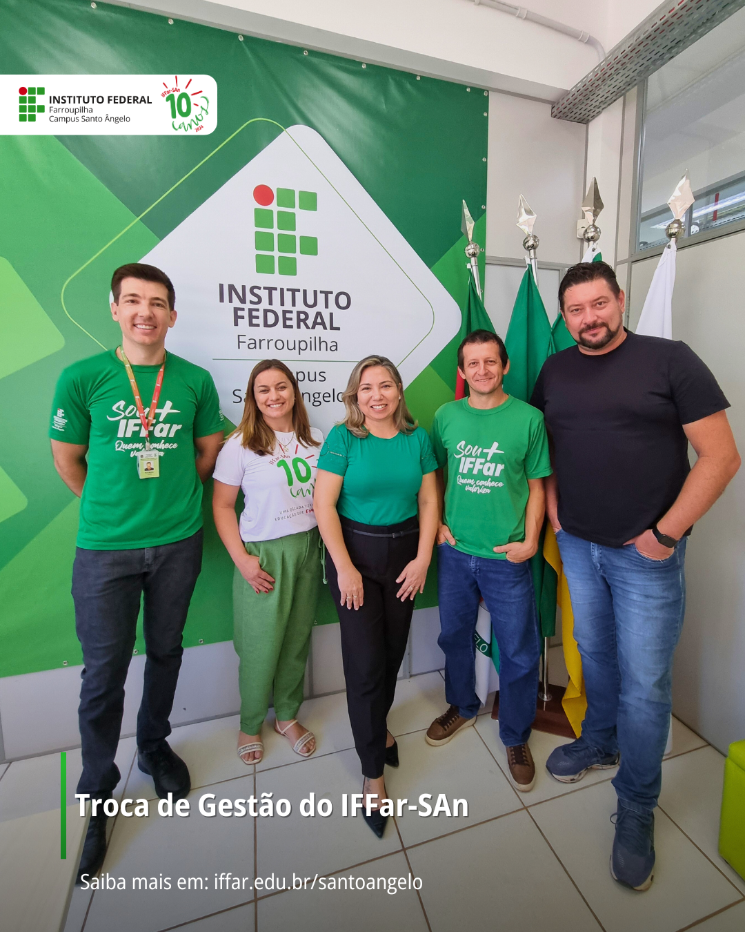 No dia 05 de fevereiro de 2025 ocorreu a reunião de transição da gestão do Instituto Federal Farroupilha - Campus Santo Ângelo. Na ocasião o Professor Adilson R. P. Stamberg - Diretor Geral na gestão de dez./2019 a jan./2020 e fev./2020 a 03 de fev./2025 compartilhou um balanço sobre as principais ações desenvolvidas ao longo deste período à nova equipe diretiva, sob a gestão da Professora Mariéli T. Krampe Machado - Diretora Geral eleita para a gestão 2025-2029. A nova gestão teve início oficialmente no dia 03 de fevereiro de 2025, conforme publicação no Diário Oficial. Este momento representa a continuidade do trabalho em prol da educação pública, gratuita e de qualidade, reafirmando nosso compromisso com o ensino, a pesquisa e a extensão.