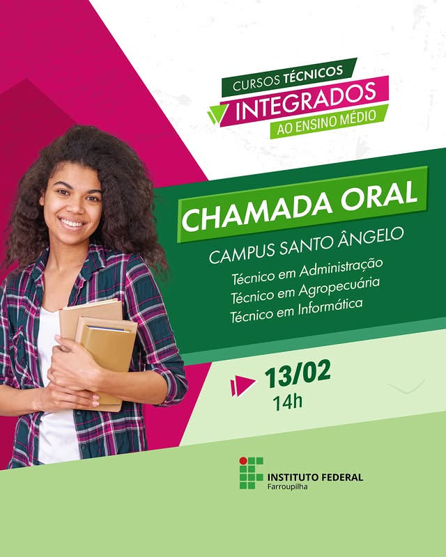Na próxima quinta-feira, dia 13/02, o Campus Santo Ângelo realizará a Chamada Oral de candidatos suplentes para o preenchimento de vagas remanescentes dos Cursos Técnicos Integrados ao Ensino Médio, para o início do ano letivo de 2025.