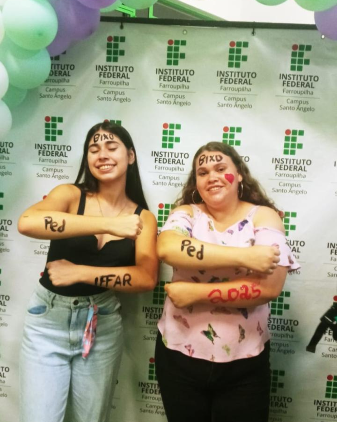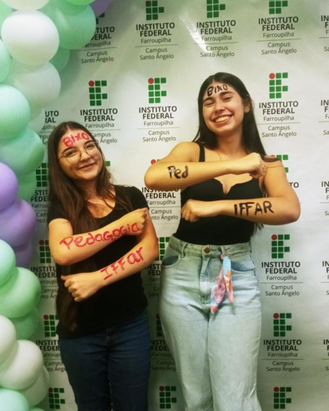 Agradecimentos a todos que participaram dessa recepção: DG Marieli; Coordenadoras Marcele (LC) e Eliane (LP); servidores; acadêmicas do Curso Superior de Licenciatura em Pedagogia.