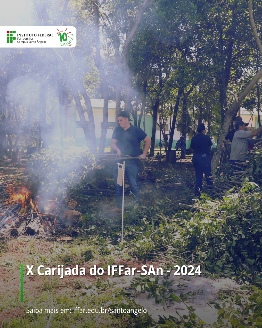 Nos dias 18 e 19/09/2024 aconteceu a X Carijada no IFFar San. Este projeto de Extensão integra o calendário de eventos do campus e acontece desde 2014, em parceria com a Universidade Federal da Fronteira Sul-UFFS. Nesses dois dias de evento, revivemos a prática ancestral de produção artesanal de erva-mate pelo método de carijo. Além da comunidade acadêmica das duas instituições de ensino federais - IFFar e UFFS, participam os indígenas M’Byá Guarani, da Tekoa Pyaú (Nova Aldeia), aldeia que se localiza no município de Santo Ângelo.