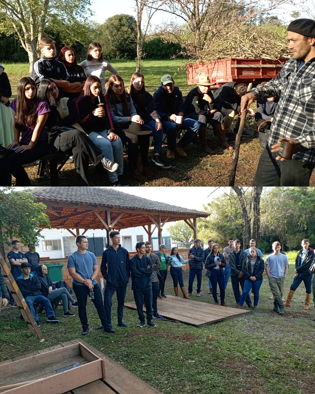 Neste trajeto, os participantes foram acompanhados por alunos do curso Técnico em Agricultura e por servidores do Setor de Produção e visitaram as estações de agrofloresta, fruticultura, frutíferas nativas, erval, meliponário, mecanização agrícola, culturas anuais, olericultura e a estação da Carijada, onde se dava o processo de produção da erva-mate. Além de alunos e servidores, pais de alunos e comunidade externa participaram das trilhas.