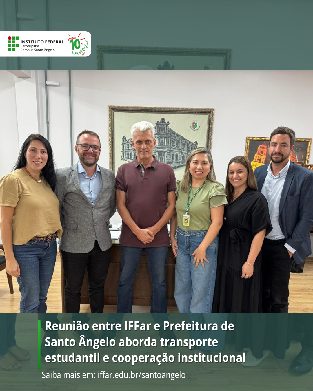 Na tarde de treze de março de 2025, ocorreu uma reunião entre o Pró-Reitor de Desenvolvimento Institucional, Pró Reitora de Ensino e Procurador da Reitoria do IFFar, Direção Geral e de Ensino do IFFar - Campus Santo Ângelo, Prefeito de Santo Ângelo e chefe de gabinete.