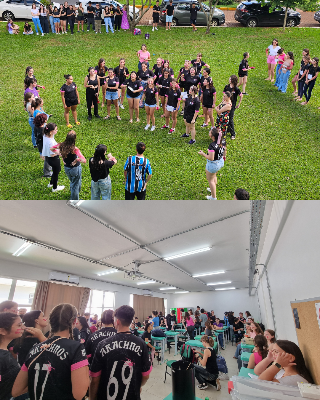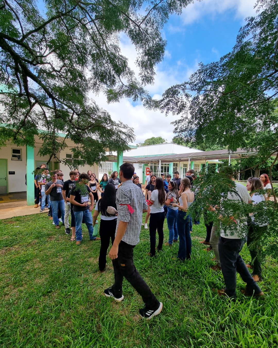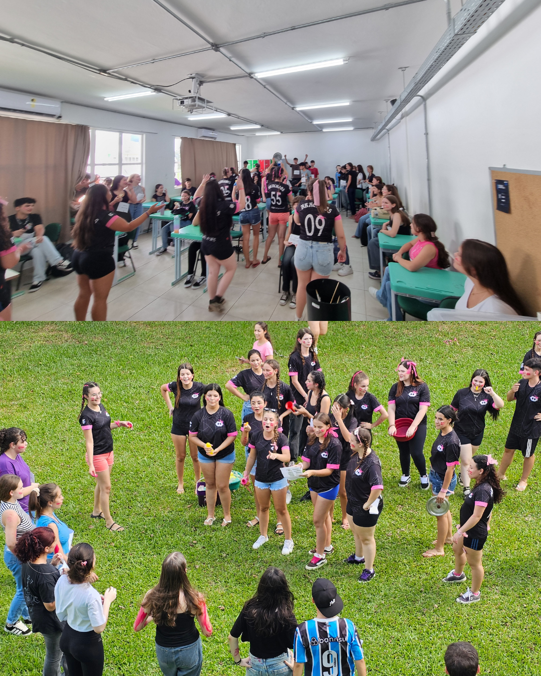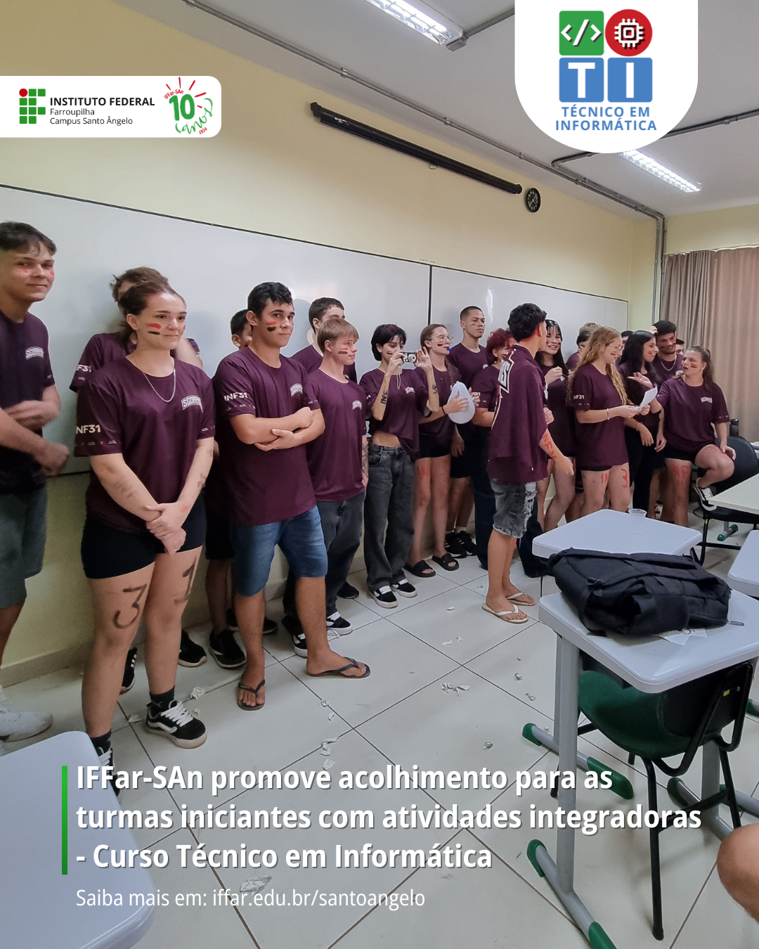 O Instituto Federal Farroupilha – Campus Santo Ângelo iniciou o ano letivo com um acolhimento especial para os calouros das turmas integradas, promovido pelas turmas veteranas. Esse momento foi marcado por atividades dinâmicas e interativas, que buscaram fortalecer os laços entre os estudantes e introduzir os novos alunos à cultura institucional. Brincadeiras, danças, caminhadas pelo campus, quizzes e dinâmicas de integração foram algumas das ações realizadas, proporcionando um ambiente acolhedor e colaborativo. A iniciativa reforça o compromisso do IFFar em oferecer uma educação de qualidade aliada ao desenvolvimento social e pessoal dos seus estudantes.