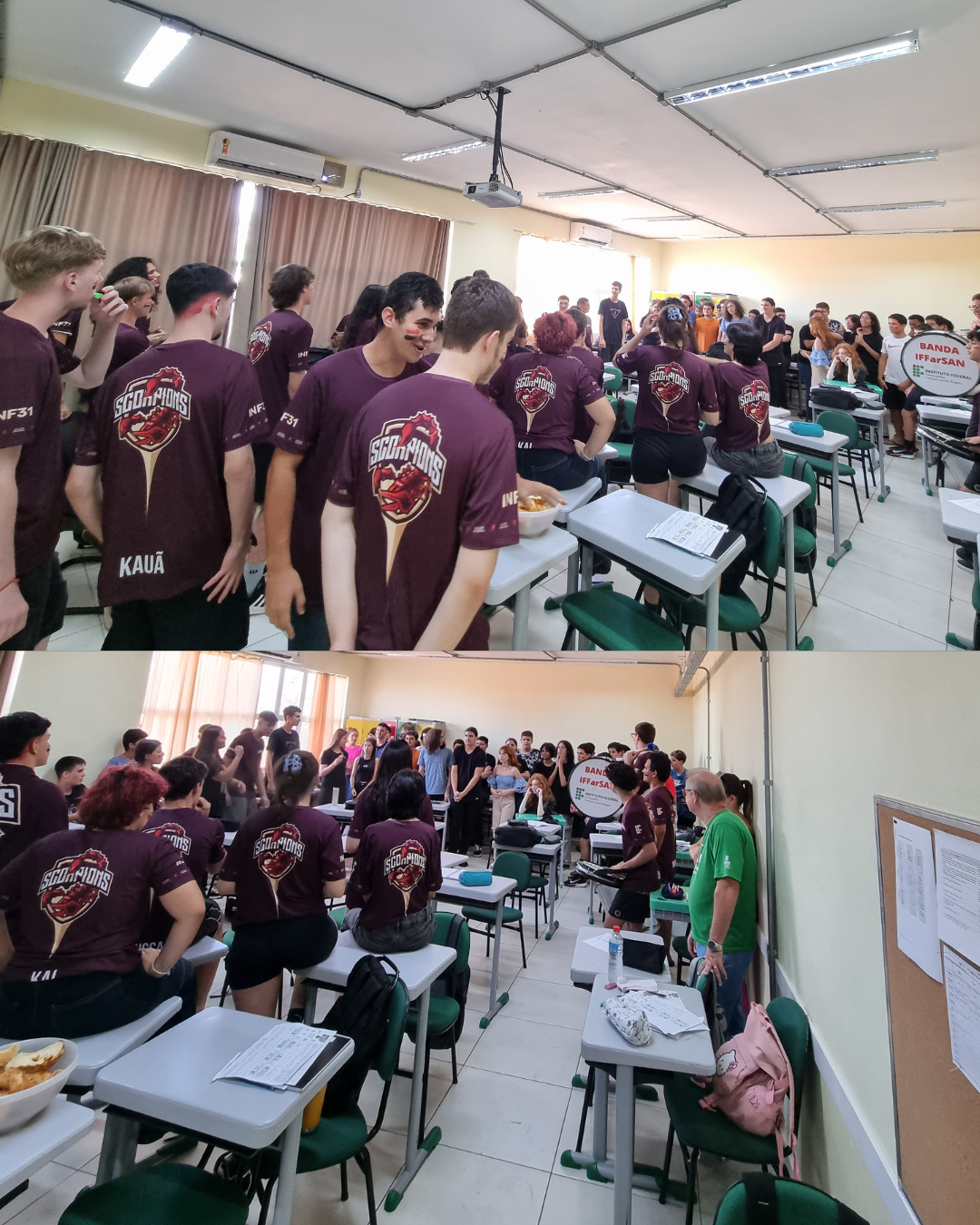 Os alunos do Curso Técnico em Informática Integrado também vivenciaram um acolhimento especial organizado pelos veteranos do terceiro ano. As atividades incluíram quizzes sobre tecnologia, desafios de lógica e brincadeiras interativas que estimularam a interação entre as turmas. Além disso, os calouros tiveram a oportunidade de conhecer mais sobre o impacto da informática na sociedade contemporânea e as possibilidades de atuação profissional na área. Os momentos de integração foram fundamentais para fortalecer os valores do curso e criar um ambiente de aprendizado colaborativo.