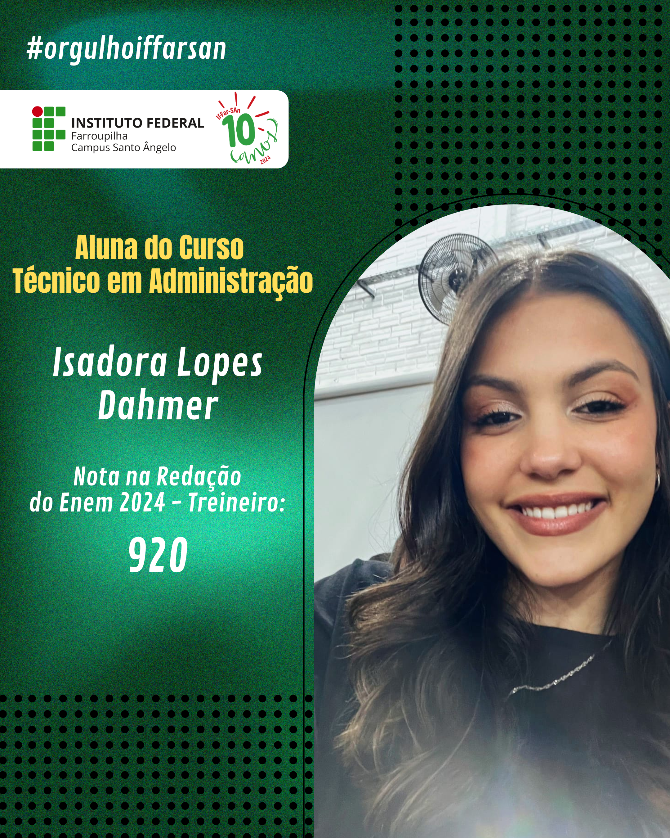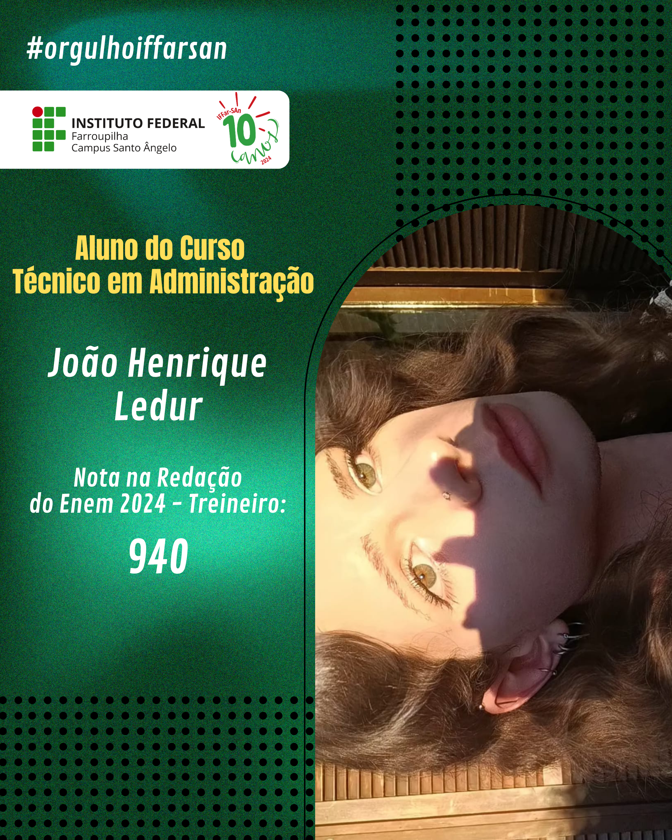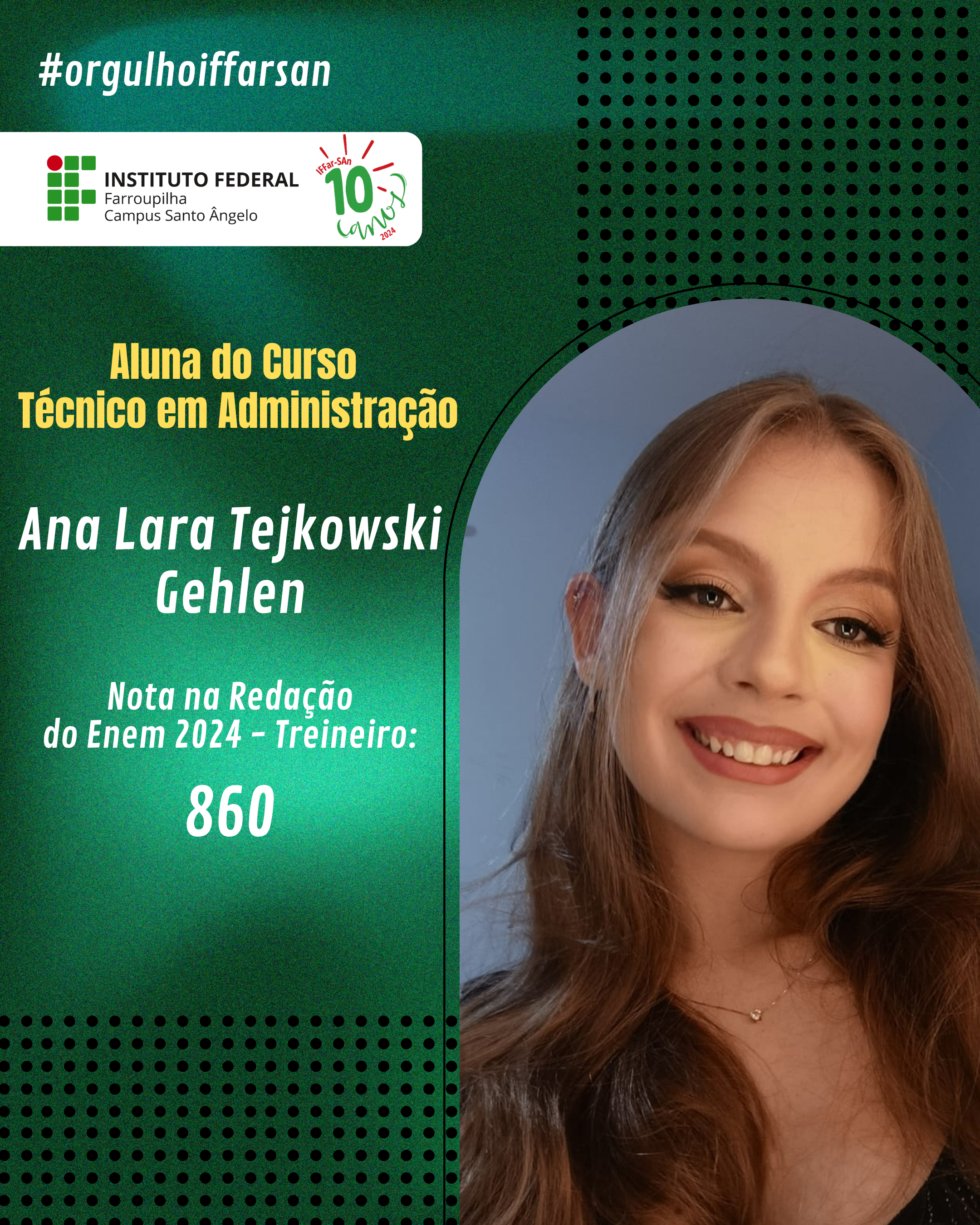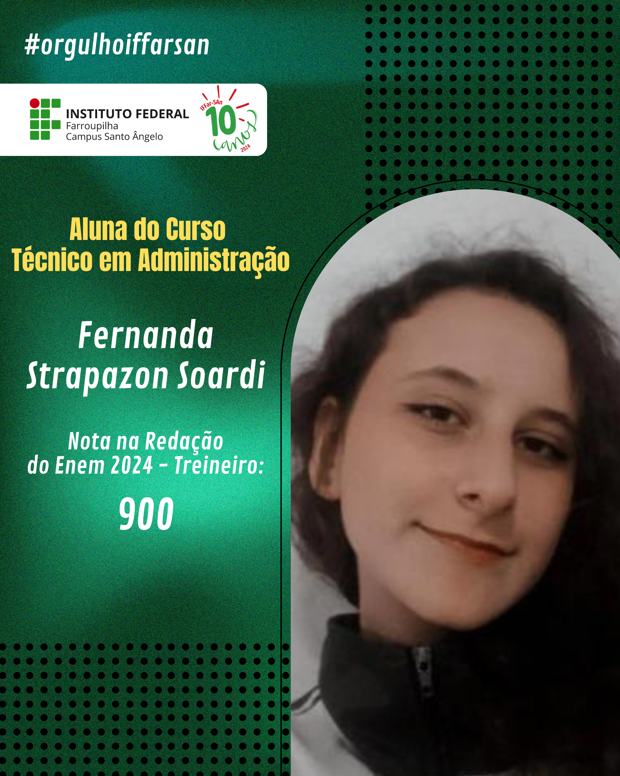 Esse resultado não é apenas uma vitória individual, mas também reflete o compromisso do IFFar-SAn em oferecer uma educação de qualidade, que prepara seus alunos para enfrentar grandes desafios. Estamos de portas abertas para apoiar nossos ingressantes, oferecer o suporte e incentivo necessários para que cada estudante cresça, se desenvolva e conquiste seus objetivos acadêmicos e profissionais. Juntos, faremos a diferença na vida de cada um!
