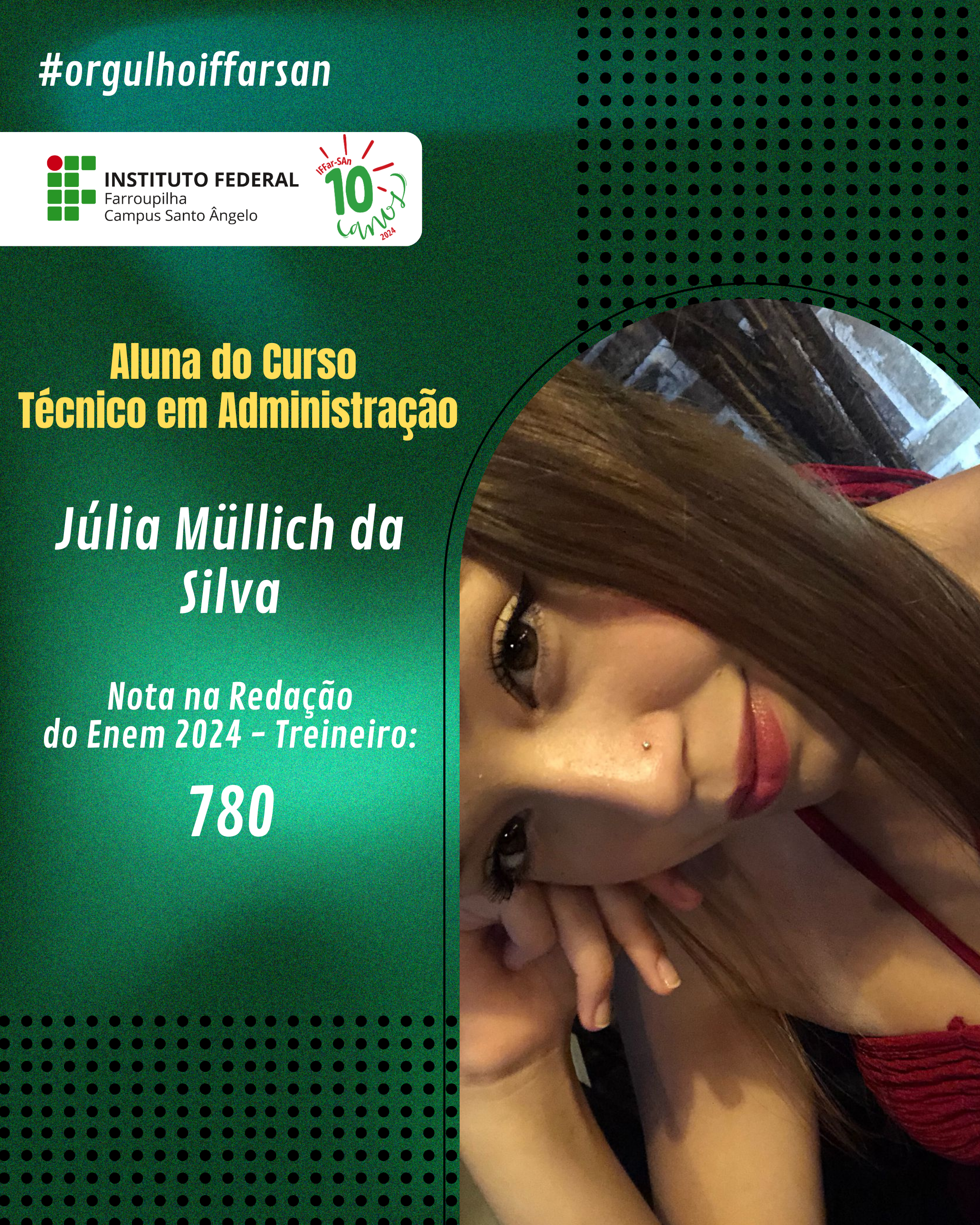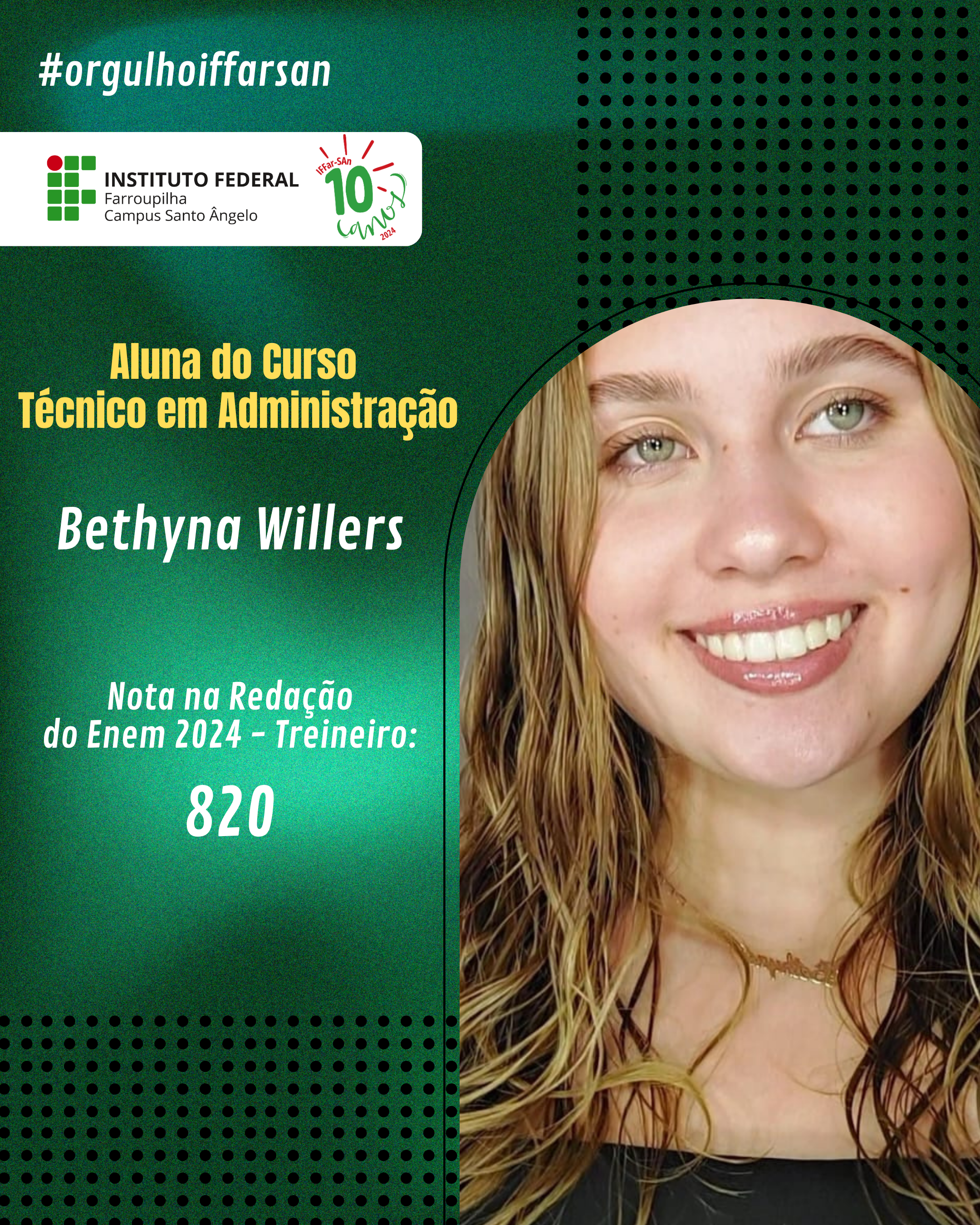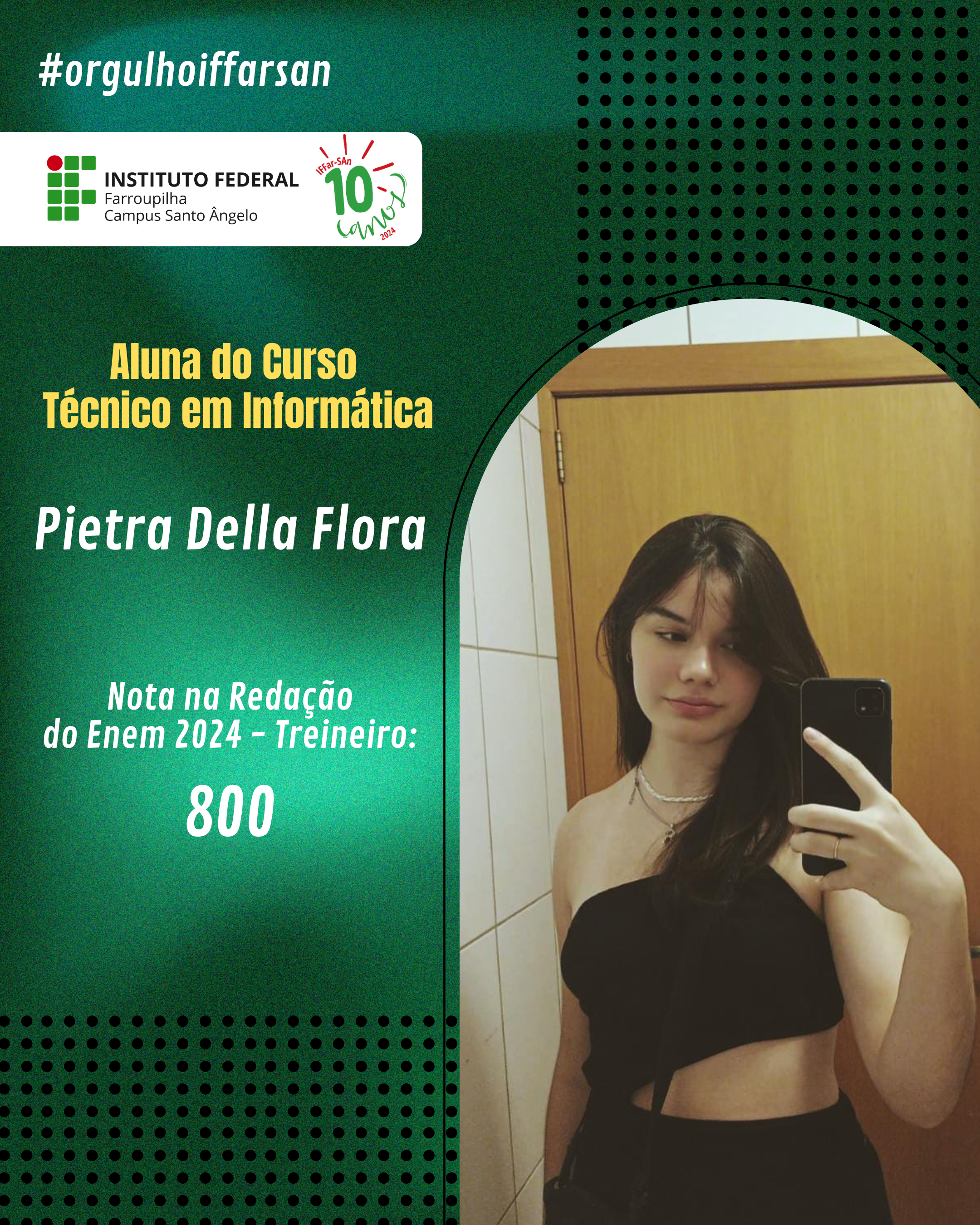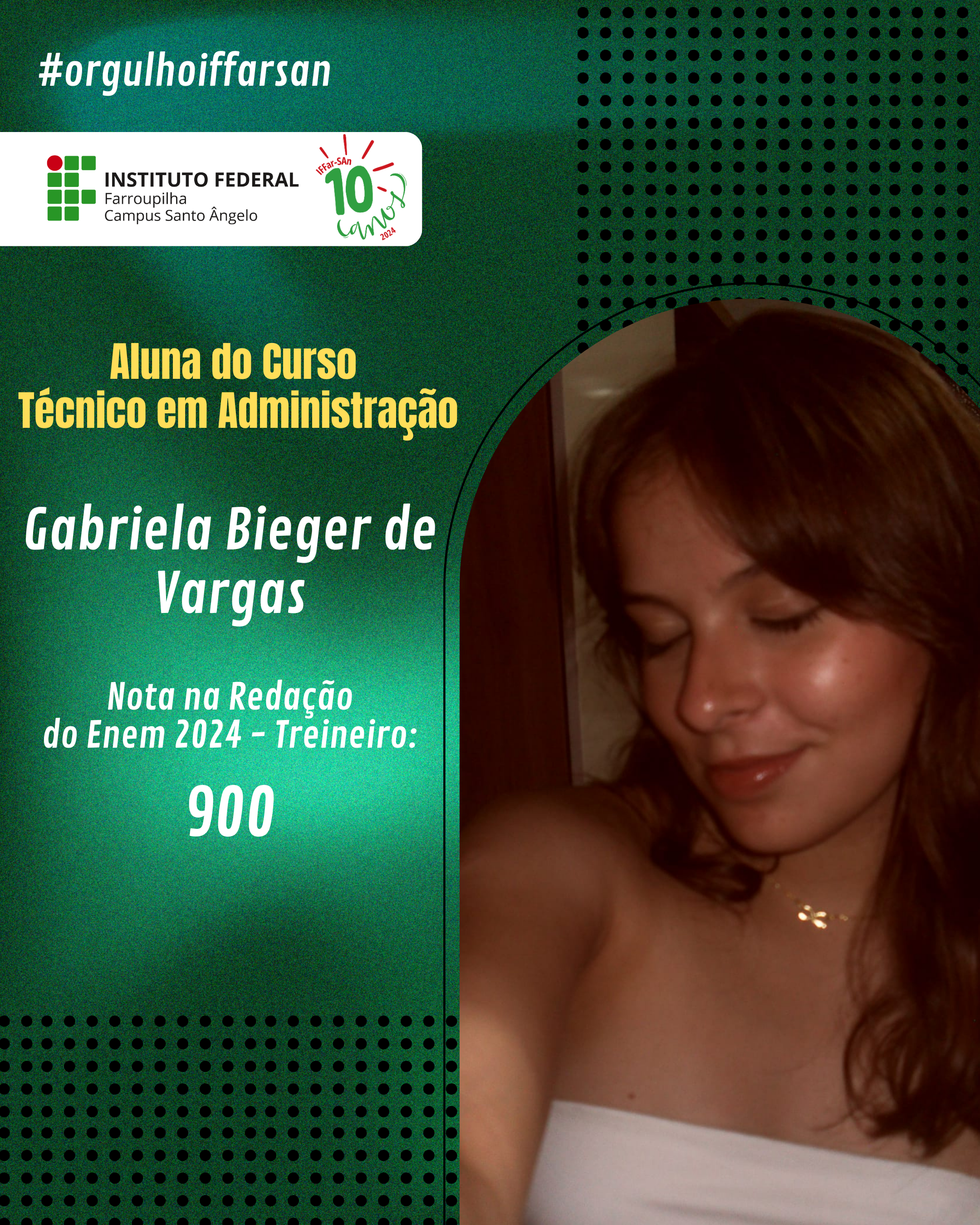 Esse resultado não é apenas uma vitória individual, mas também reflete o compromisso do IFFar-SAn em oferecer uma educação de qualidade, que prepara seus alunos para enfrentar grandes desafios. Estamos de portas abertas para apoiar nossos ingressantes, oferecer o suporte e incentivo necessários para que cada estudante cresça, se desenvolva e conquiste seus objetivos acadêmicos e profissionais. Juntos, faremos a diferença na vida de cada um!
