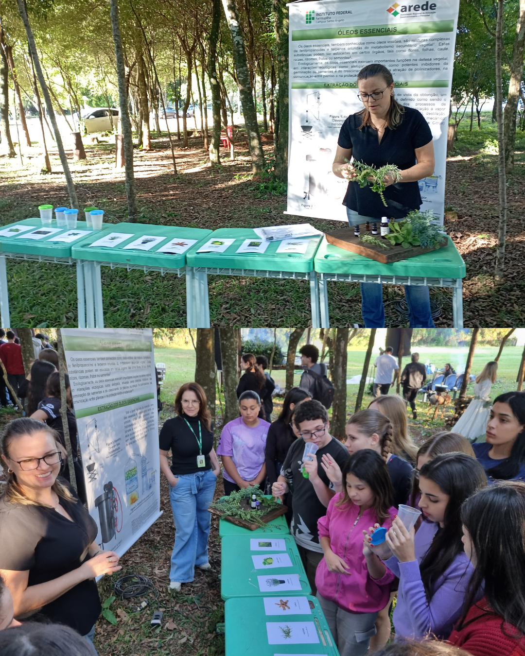 Além dessas atividades, tivemos abrilhantando o evento oficinas diversas com os alunos de Ensino Médio: Pão de alho proposta pelo Leandro Daranco; Erva-mate na culinária, com Marita Miinetto; Incensos Naturais de Citronela com Marcele Ravasio; Plantas aromáticas e óleos essenciais conduzida pela Professora Ângela Pawlowski e o Projeto Café com Poesia organizado pela professora Adriana Kemp.