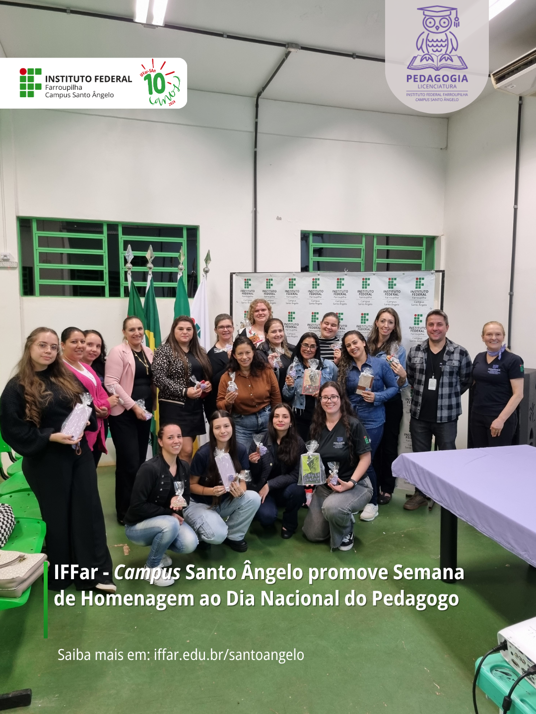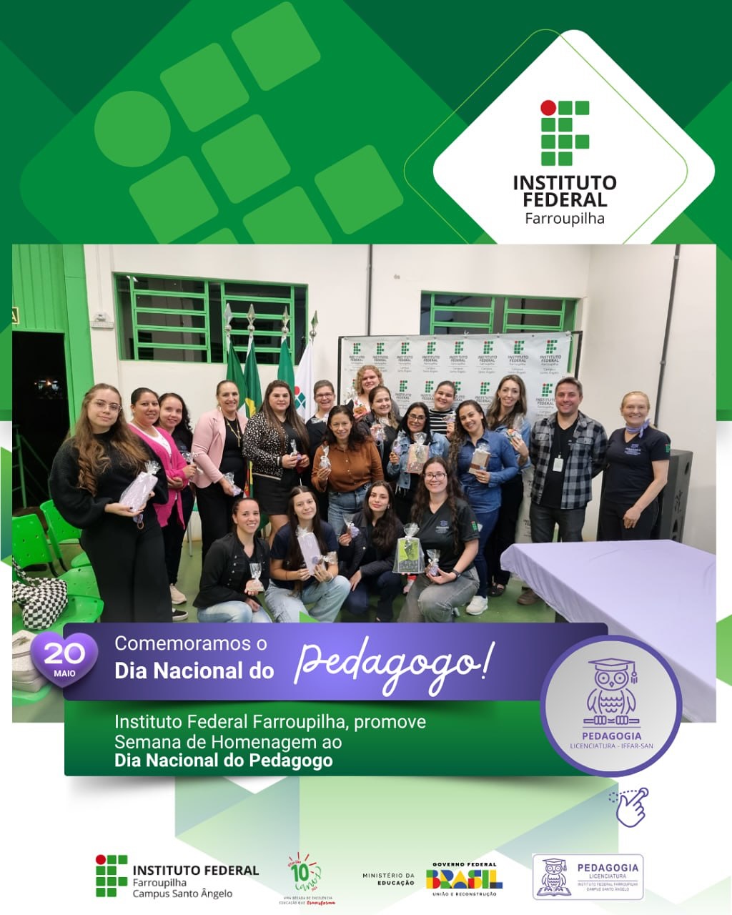 IFFar - Campus Santo Ângelo, por meio do Curso Superior de Licenciatura em Pedagogia promoveu programação especial entre os dias 19 a 23 de maio de 2025, em alusão ao Dia Nacional do Pedagogo (20/05).