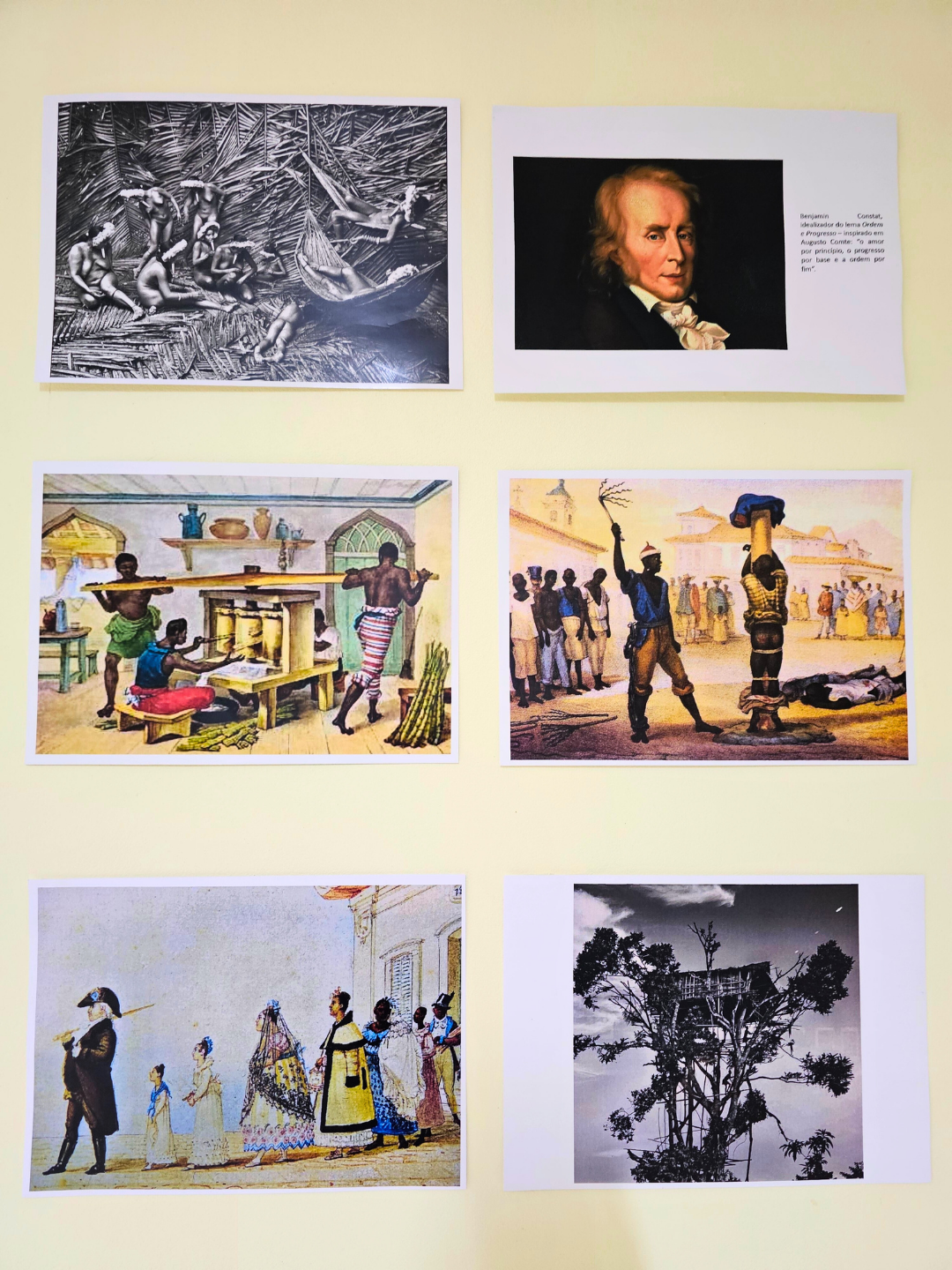 Entre as obras utilizadas, destacou-se a pintura “A Redenção de Cam”, do artista Modesto Brocos (1852–1932), que aborda, de maneira crítica, questões raciais e sociais do século XIX, representando o ideal de branqueamento presente na Velha República.