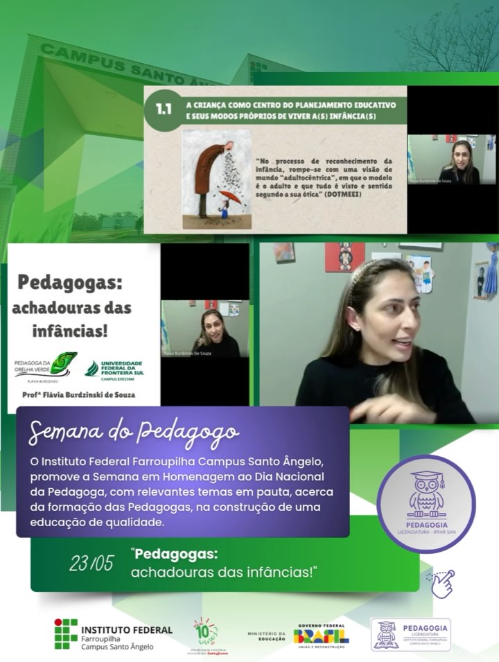A Professora Dra. Flávia Burdzinski de Souza, da Universidade Federal da Fronteira Sul (UFFS) – Campus Erechim, participou da Semana em Homenagem ao Dia Nacional da Pedagoga no IFFar – Campus Santo Ângelo, com a palestra intitulada “Pedagogas: achadouras das infâncias”.