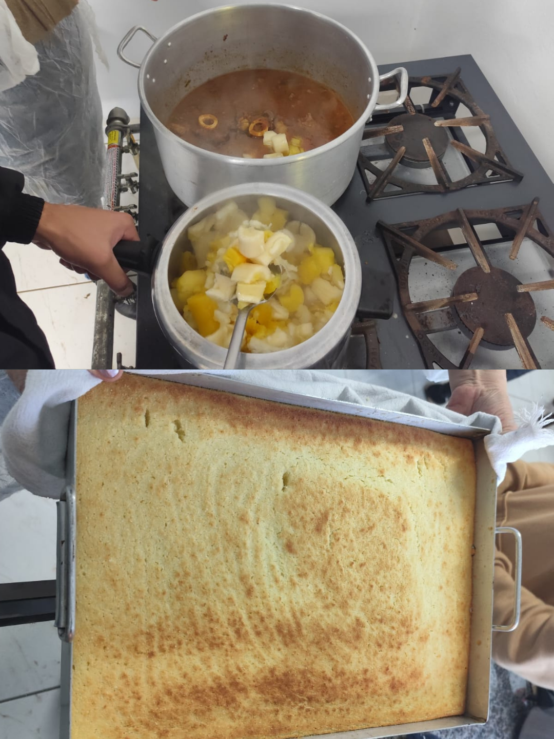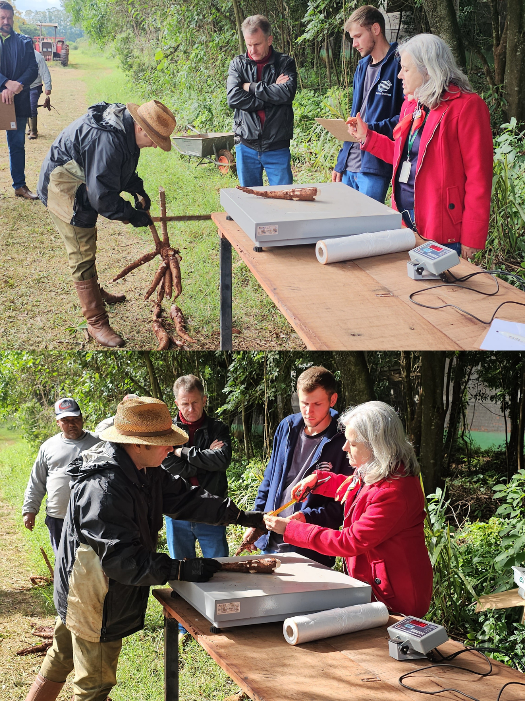 E com as raízes colhidas, a turma AGR31 realizou o processamento mínimo da mandioca (descascamento, lavagem, embalagem e congelamento). Também prepararam um delicioso ensopado e um bolo de mandioca, feitos com diferentes variedades — com direito a degustação e aprovação dos estudantes!