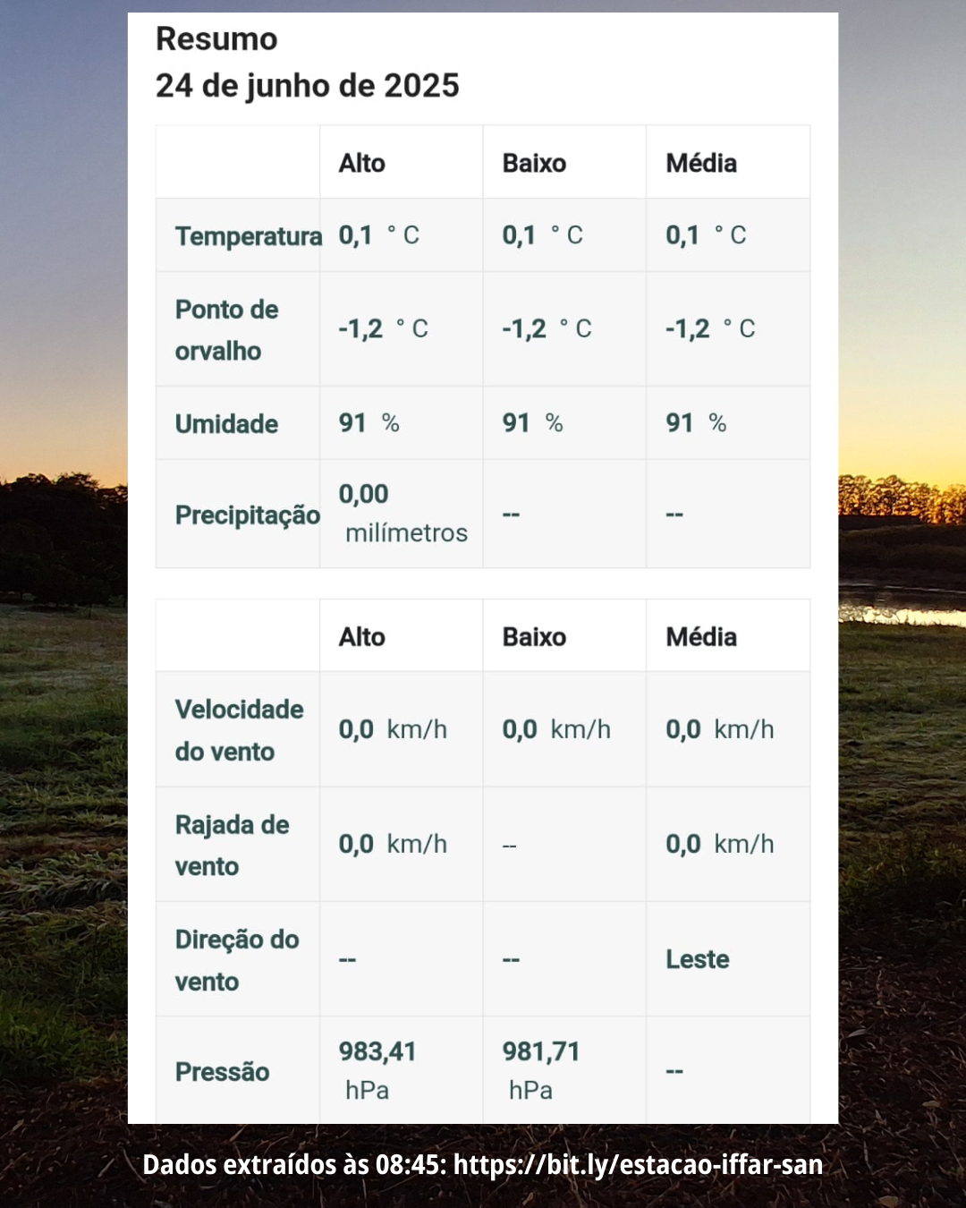 Os dados podem ser acompanhados em tempo real pelo link: https://bit.ly/estacao-iffar-san