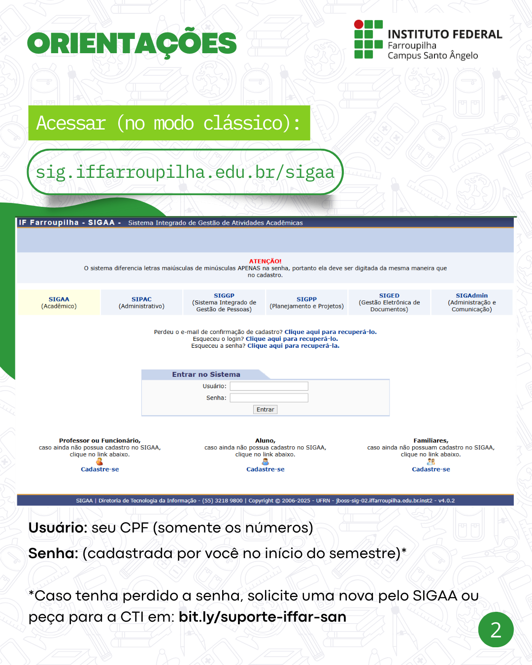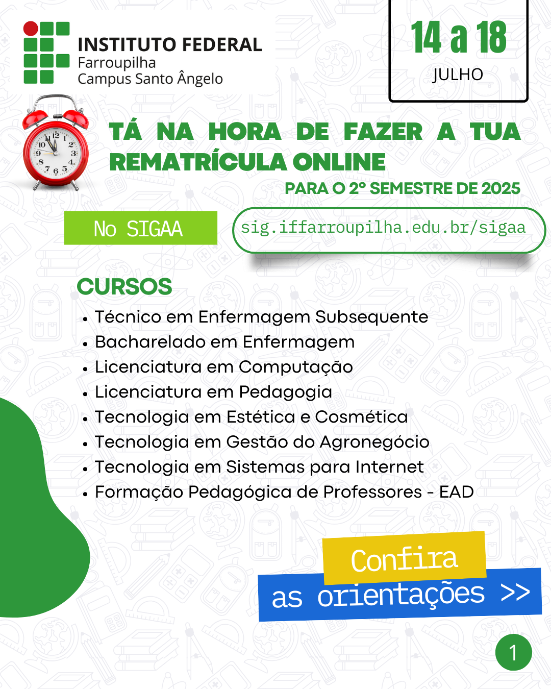 Para realizar a rematrícula, acesse: sig.iffarroupilha.edu.br/sigaa
