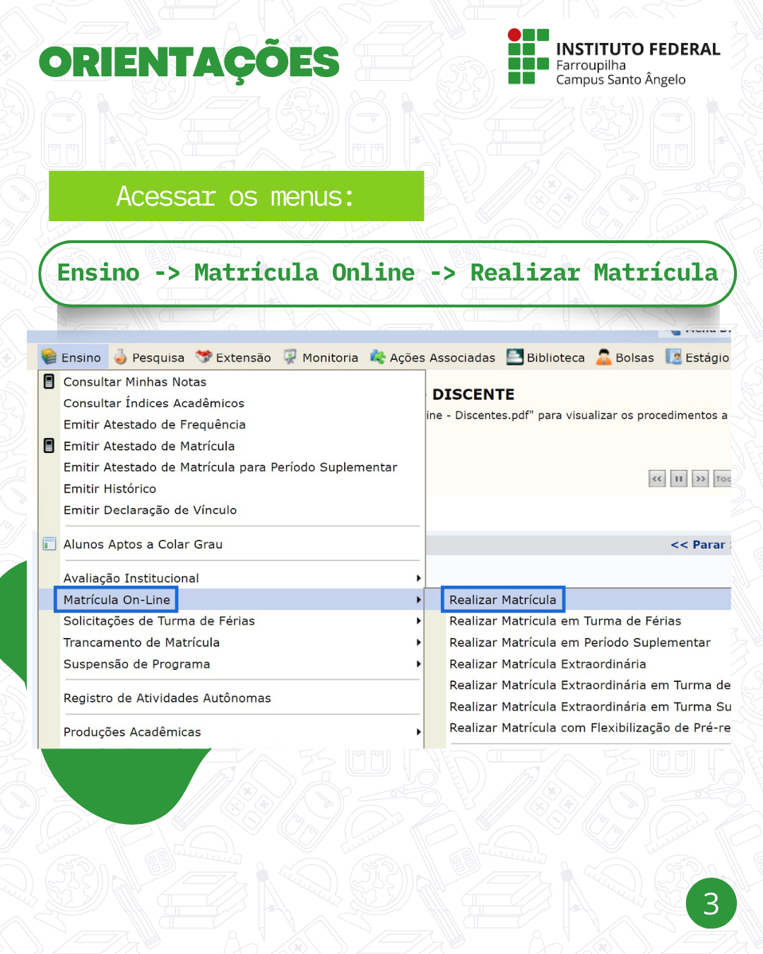 Vá em: Ensino → Matrícula Online → Realizar Matrícula