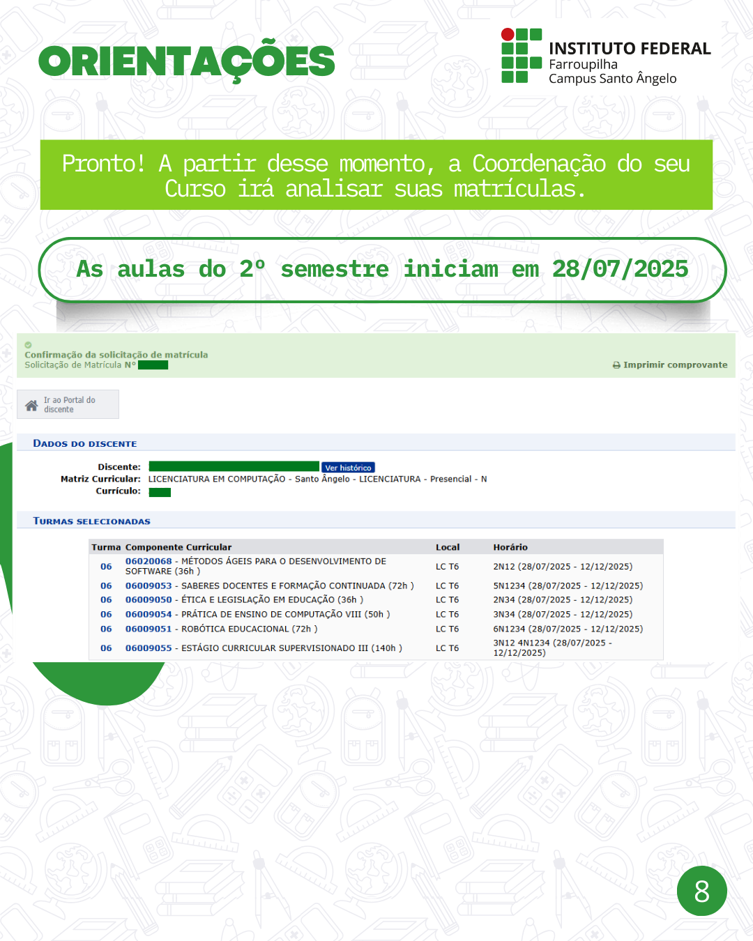 Rematrícula online para o 2º semestre de 2025 - de 14 a 18/07/2025