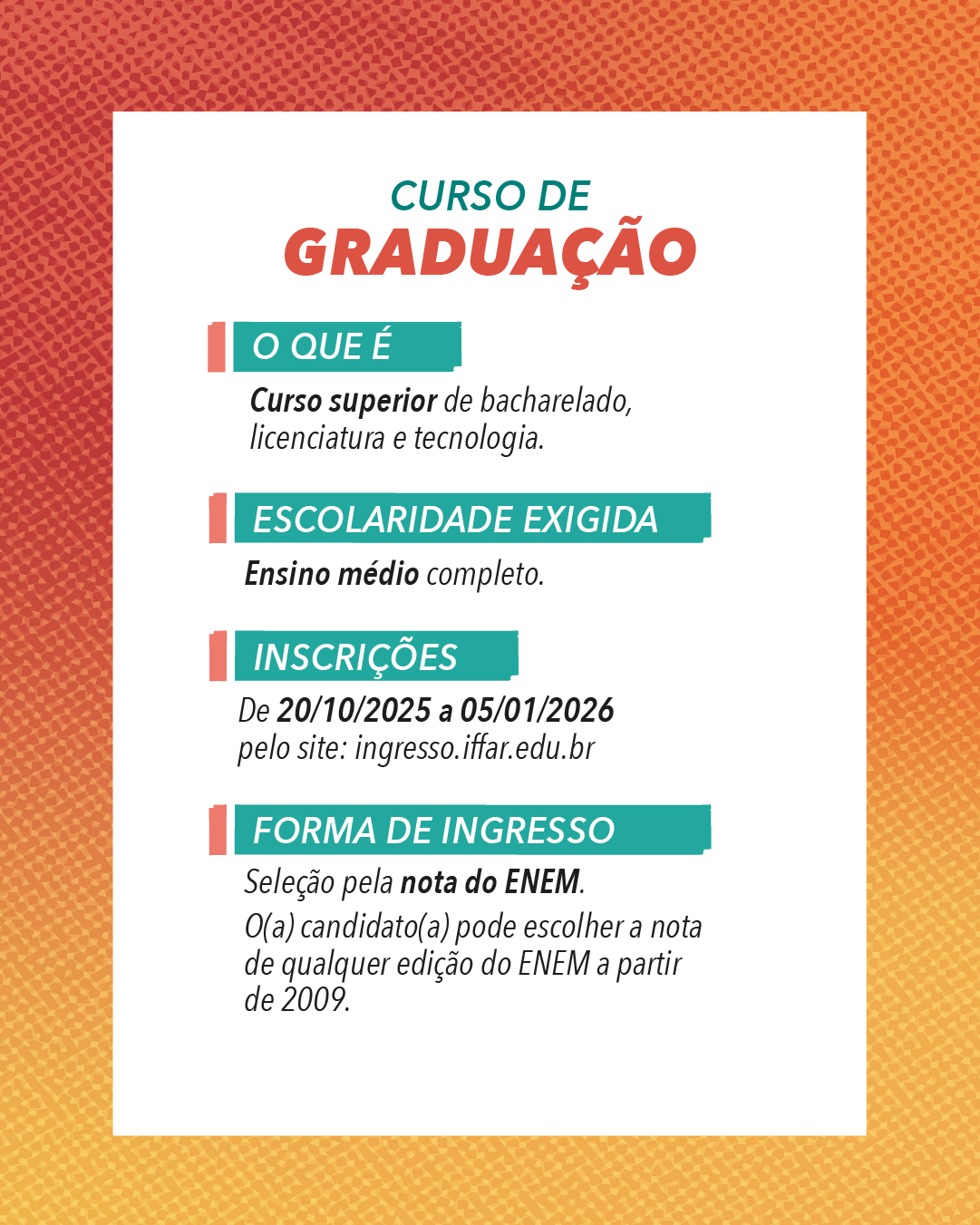 Fique de olho nas datas de inscrição e saiba mais em: https://ingresso.iffar.edu.br