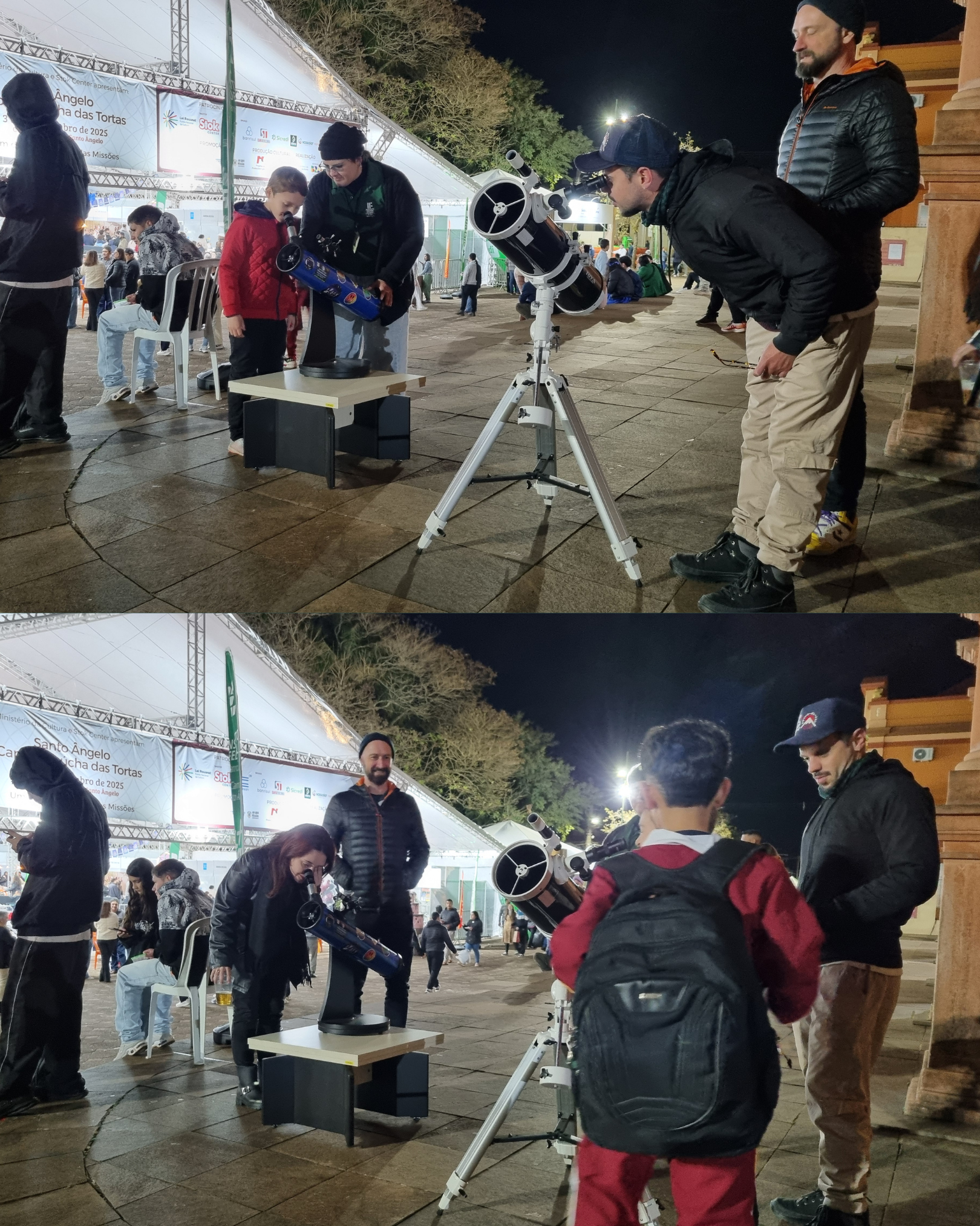 Com o uso de um telescópio, visitantes puderam observar de perto a Lua e suas crateras, despertando a curiosidade e o interesse pela exploração do universo. Além disso, o grupo apresentou um fragmento de meteorito encontrado em Santa Vitória do Palmar/RS, disponibilizado para visualização em microscópio, possibilitando ao público conhecer mais sobre esse material raro que chega até a Terra vindo do espaço. Mais informações podem ser encontradas no link: https://share.google/rHdyGHnrNxCPZVq9M
