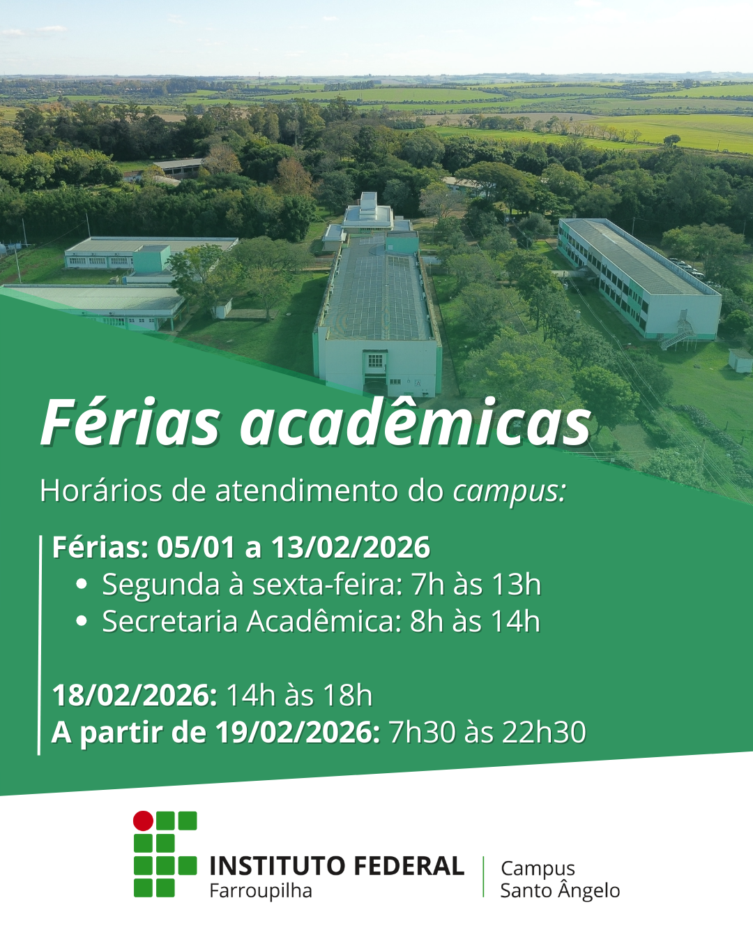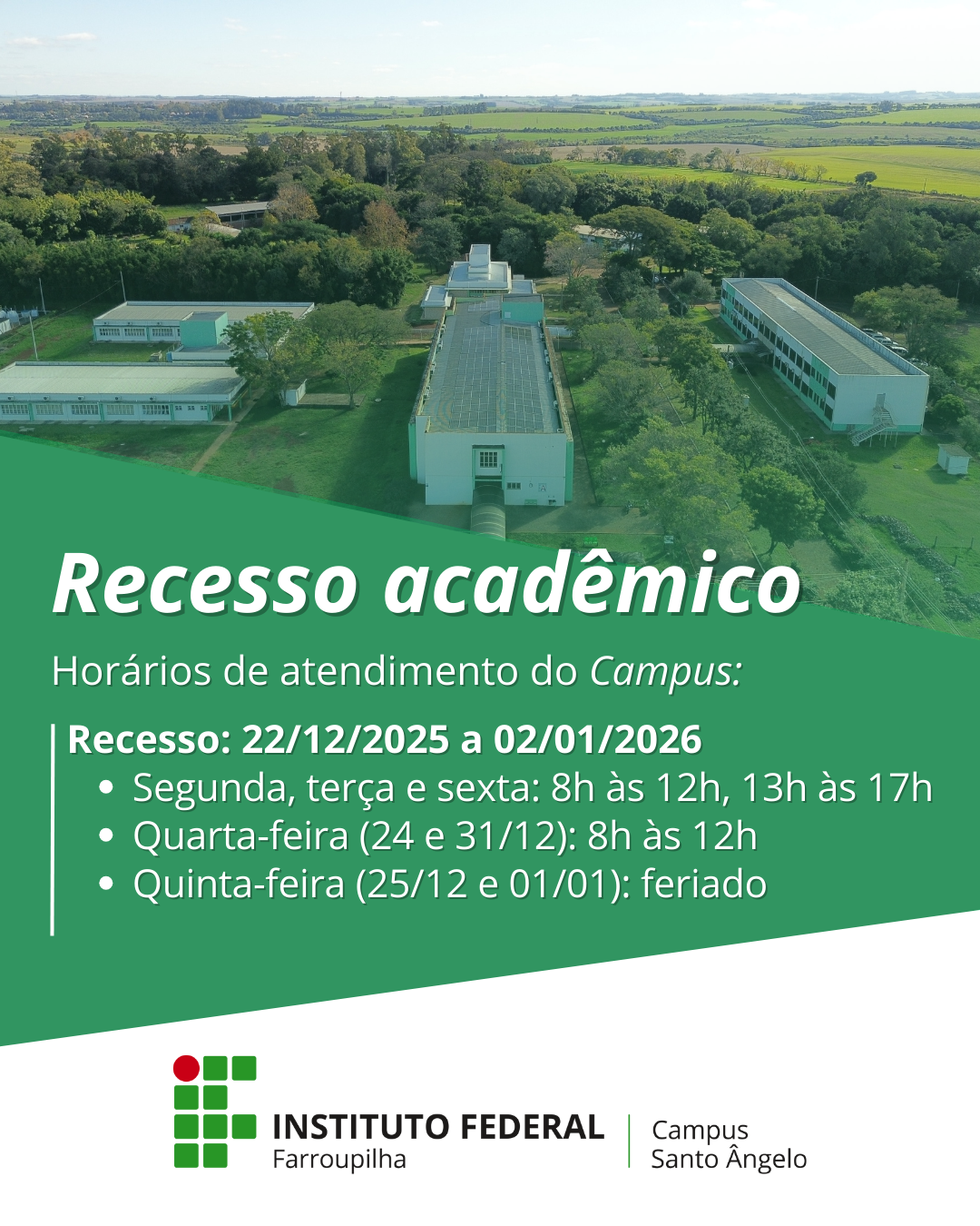 Horário de funcionamento durante o recesso e férias acadêmicas – IFFar Campus Santo Ângelo