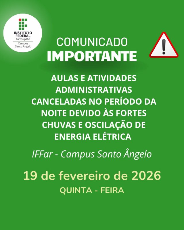 Comunicamos que em função do temporal e oscilação de energia elétrica, as aulas e atividades administrativas dessa noite (19/02/2026) foram suspensas.