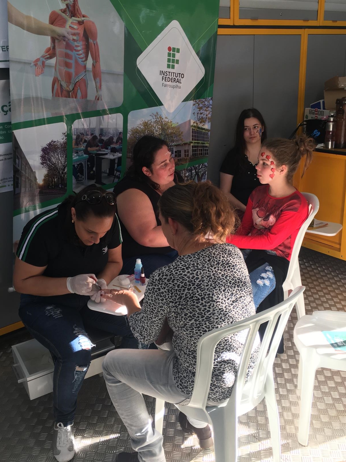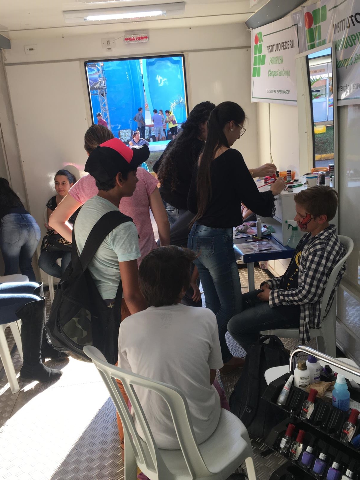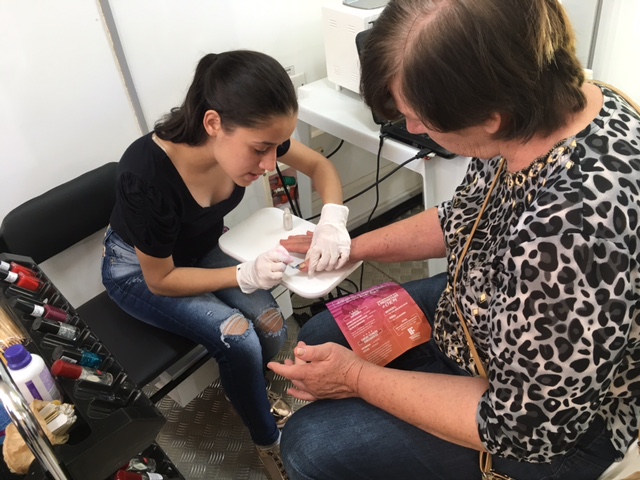 Os alunos do Curso Técnico em Estética, estiveram presentes, realizando esmaltação de unhas, maquiagens artísticas nas crianças e orientações quanto ao uso do protetor solar, revelando as aprendizagens construídas na instituição.