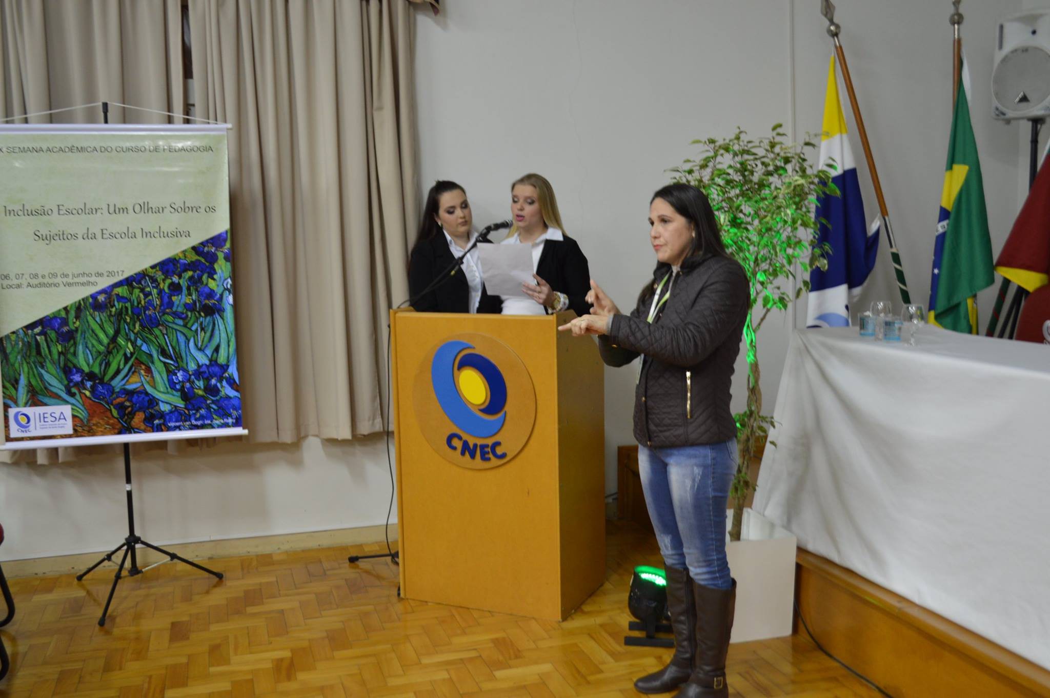 Intérpretes de Libras do IFFar participavam da X semana Acadêmica do Curso de Pedagogia IESA.