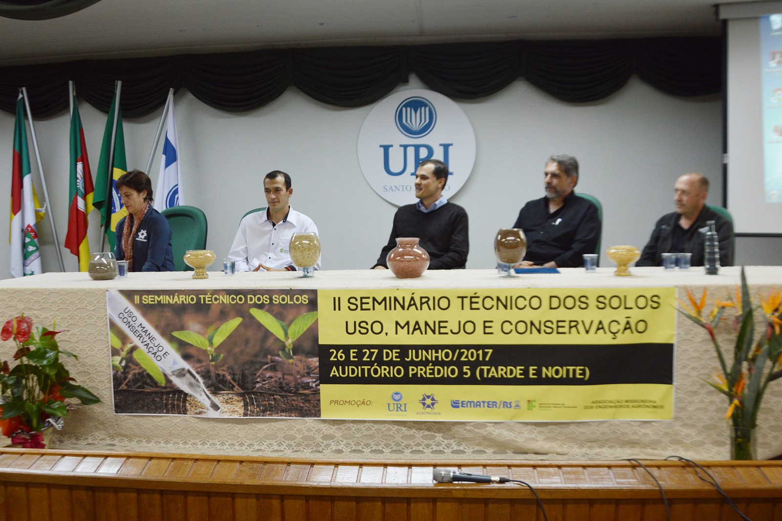 O IFFar Campus de Santo Ângelo com o curso técnico em agricultura, o curso de Agronomia da URI, a Emater/Ascar e a Associação Missioneira de Engenheiros Agrônomos foram parceiros na organização do II Seminário Técnico sobre manejo e conservação de solos, realizado entre os dias 26 e 27 de junho de 2017 no Campus da URI de Santo Ângelo.