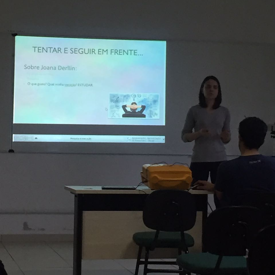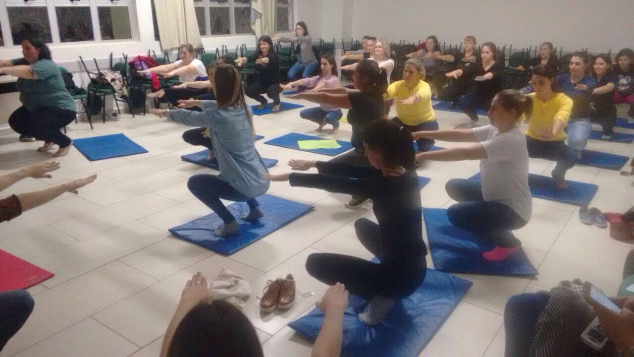 No dia 23 esteve presente a ex-aluna Joana Derllin abordando sua trajetória profissional, com posterior prática de yoga, uma das técnicas realizadas em sua clínica, depois de especializações na área.