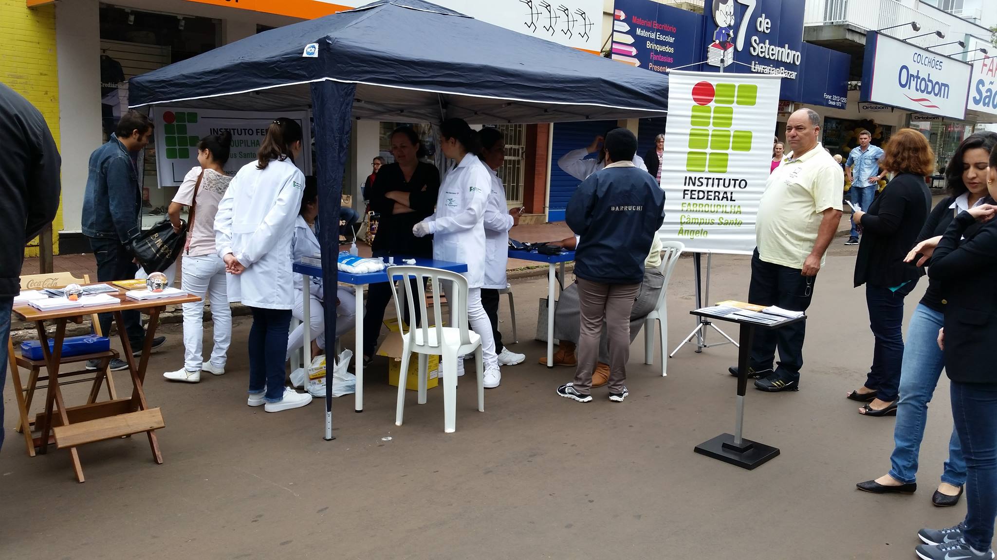 No domingo, 26 de novembro, os alunos do Instituto Federal Farroupilha Campus Santo Ângelo, juntamente com os servidores da Instituição, estiveram participando do Brique da Praça. Na ocasião, os alunos do Curso Técnico em Enfermagem realizaram atendimentos à comunidade e os demais alunos divulgaram os Cursos ofertados pelo IFFar.