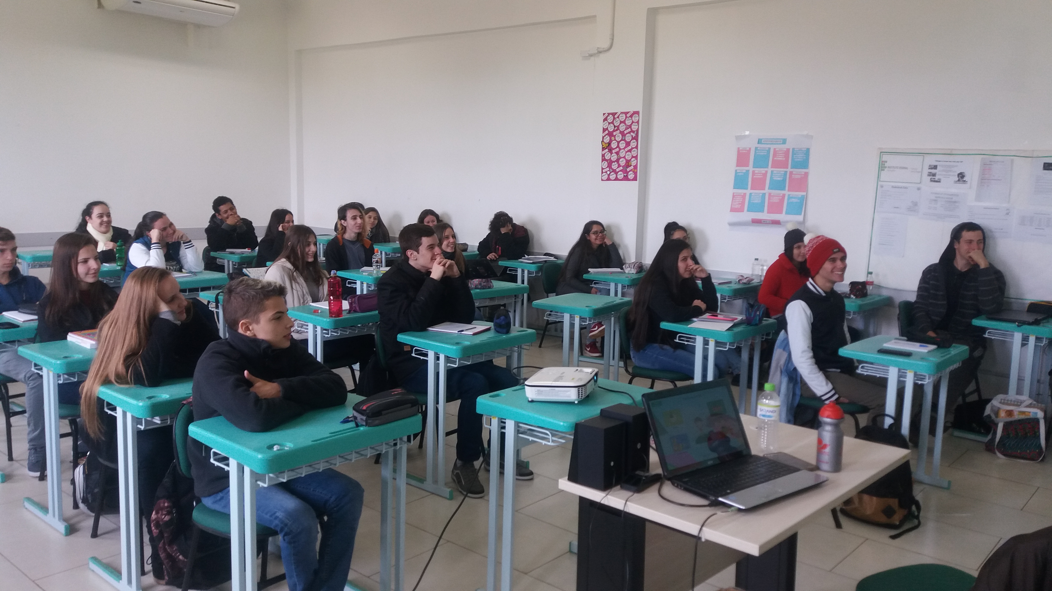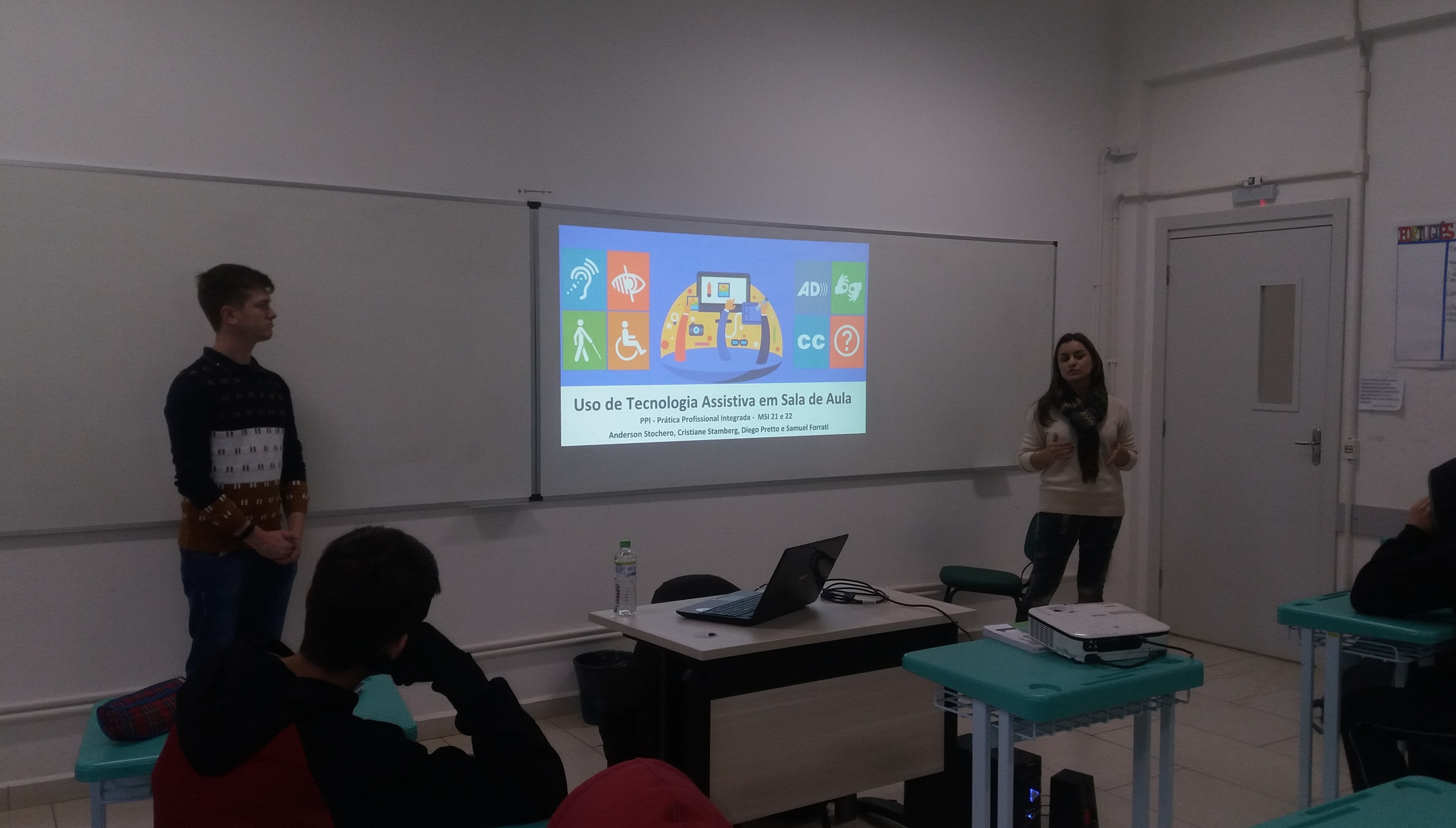 Ocorreu no dia 04/06 no Campus Santo Ângelo um momento de reflexão e debate sobre Tecnologia Assistiva, tema extremamente pertinente e relevante para sociedade atual e que compõe o desenvolvimento da Prática Profissional Integrada - PPI dos alunos do 2° ano do curso Técnico Integrado de Manutenção e Suporte em Informática neste ano letivo. O momento foi organizado pelos professores Cristiane da Silva Stamberg e Diego Pretto, e contou também com a participação dos alunos do Curso Superior de Tecnologia em Sistemas para Internet - Anderson Daniel Stochero e Samuel Müller Forrati, os quais, juntamente com a professoras Andréa Pereira e Cristiane Stamberg, desenvolvem o Projeto de Pesquisa “O ensino e a aprendizagem em matemática com o auxílio de ferramentas tecnológicas”, que objetiva a criação de um jogo computacional matemático, tendo como público alvo crianças com Transtorno do Espectro Autista - TEA, contemplando a área da Tecnologia Assistiva. Além de falar sobre o projeto, os acadêmicos também apresentaram, no decorrer da conversa, alguns pontos importantes sobre o tema, visando esclarecer possíveis dúvidas e contribuir com ideias e inspirações para o desenvolvimento da PPI.