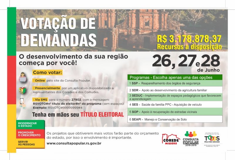Vamos exercer a cidadania, vamos votar na Consulta Popular 2018 do Governo do Estado do Rio Grande do Sul - Orçamento 2019!