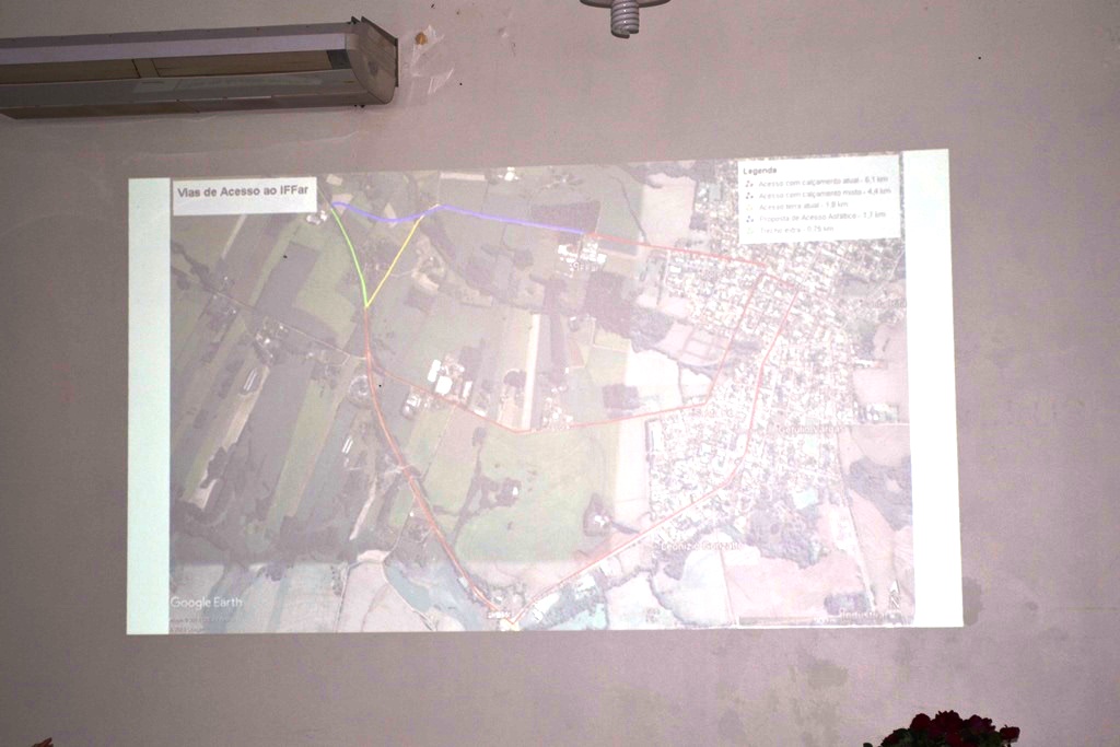 Verlaine explicou aos presentes, que a obra beneficiará os estudantes de todas as cidades que utilizam o acesso secundário para chegar ao Campus Santo Augusto, no entanto demandará um grande investimento, que poderá custar mais de 5 milhões de reais. Na sequência, Otávio Polo apresentou o traçado do acesso asfáltico e as partes do projeto que já estão concluídas. O prefeito Naldo Wiegert, afirmou que o executivo apoiará totalmente o projeto, mas no momento não dispõe de recursos para custear a obra, sendo importante ter o projeto pronto, o mais breve possível, para que seja enviado ao Departamento de Estradas e Rodagens – DAER para aprovação.