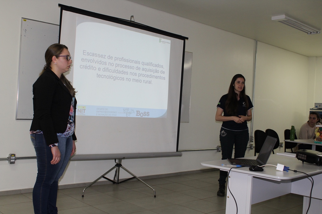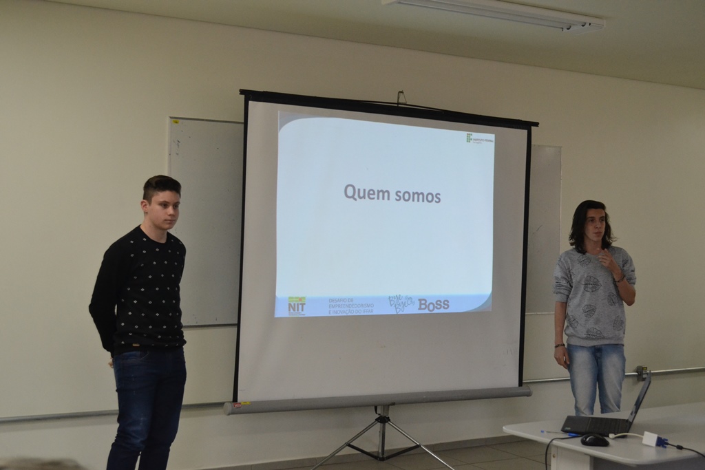 O Núcleo de Inovação e Transferência de Tecnologia (NIT) do IFFar – Campus Santo Augusto realizou na tarde de ontem, 26 de setembro, a final local do “Bye Bye Boss - Desafio de Empreendedorismo e Inovação do IFFar”, uma ação conjunta dos campi, que busca alavancar as atividades de empreendedorismo e inovação.
