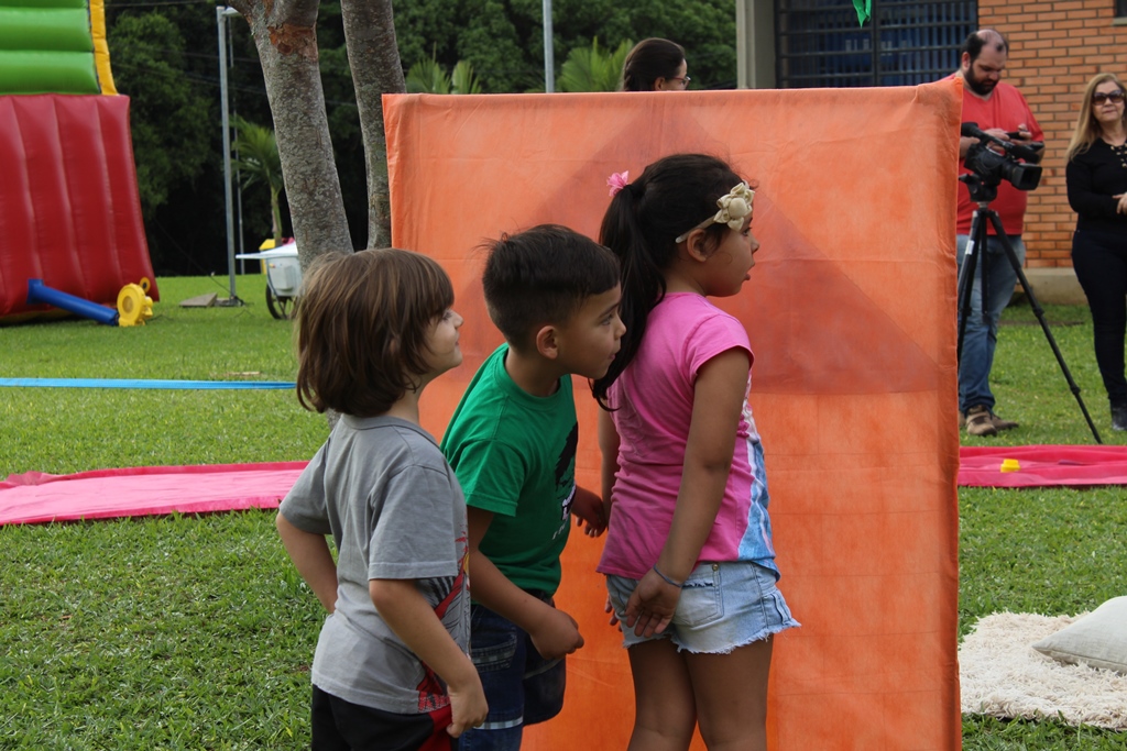 Para realizar a gravação foram convidadas todas as crianças da comunidade acadêmica para vir ao campus no último sábado dia 06/10, às 15h30, com seus brinquedos prediletos para brincarem livremente nos gramados da instituição.