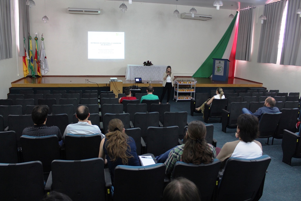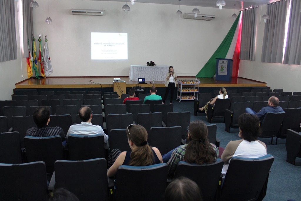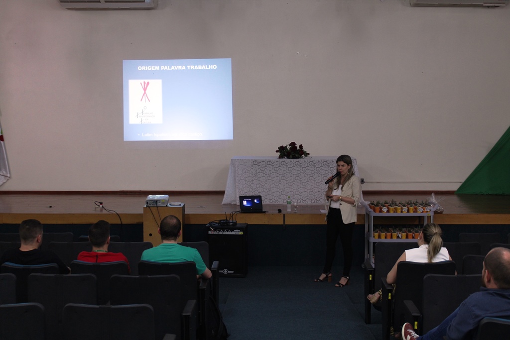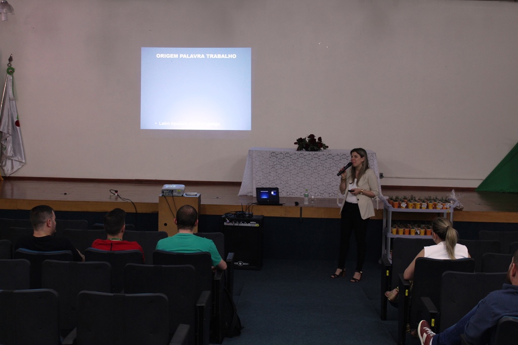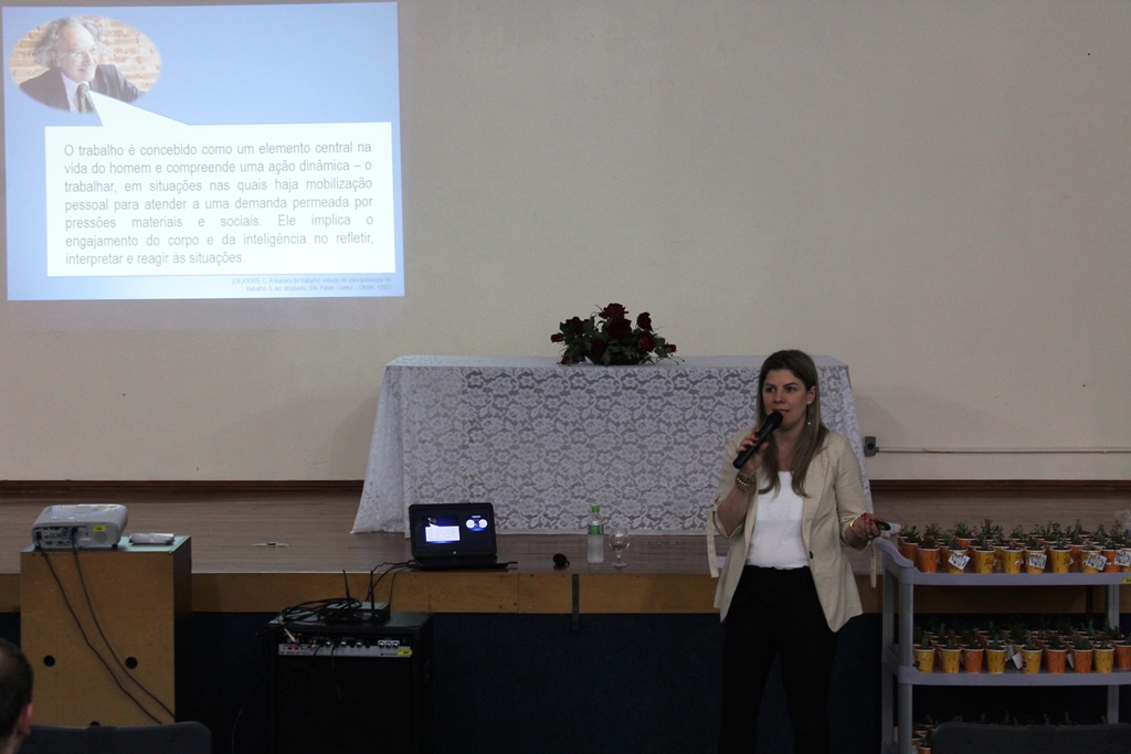 As atividades tiveram início, na quarta-feira, dia 24, às 13h30, no auditório da instituição com a palestra “Estresse e Síndrome de Burnout”, ministrada pela enfermeira do IFFar – Campus Panambi, Sabrina Azevedo Wagner Benetti, a qual falou sobre os problemas acarretados pelo estresse no trabalho. Após a palestra, os servidores receberam de presente mudas de suculentas plantadas em copinhos de café, produzidas através do projeto de reutilização “Era uma vez um copo que iria pra o lixo”, desenvolvido pela professora Simone Ceretta e pelos estudantes Khetlyn Günther e Felipe dos Santos, com o apoio da direção. Na sequência, os servidores interessados, puderam participar de uma oficina de Slackline, com o professor de Educação Física Fabricio Döring Martins.