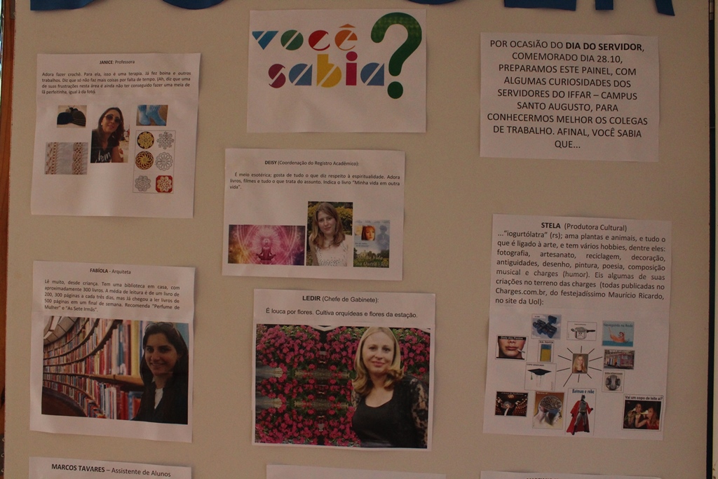 Também como homenagem aos servidores pelo seu dia, a produtora cultural Stela Paris produziu um painel com curiosidades sobre alguns colegas, que está no hall de entrada, compartilhando algum hobby, habilidade, mania, medo, paixão ou sonho, desconhecidos pela maioria. Segundo Stela, “mesmo quem acha que não tem nada de especial para contar ou mostrar, na verdade sempre tem uma peculiaridade que o(a) diferencia; algo admirável por muitos ou por todos”.