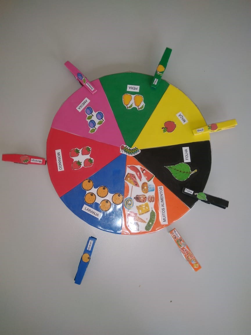 Segundo a professora Camila, em uma segunda conversa com a professora Cleunice, que atende alunos com déficit de atenção e autistas na APAE, surgiu a ideia da história infantil “A lagarta comilona”, porque é uma história que trabalha conceitos de ciências, fala sobre os alimentos, sobre a metamorfose, e possibilita muito mais do que trabalhar a escrita, mas também a fonologia, a matemática, a ordenação e sequência.