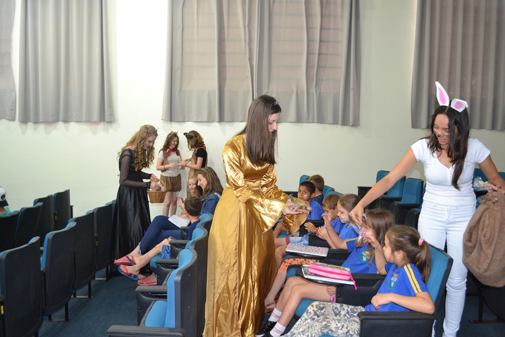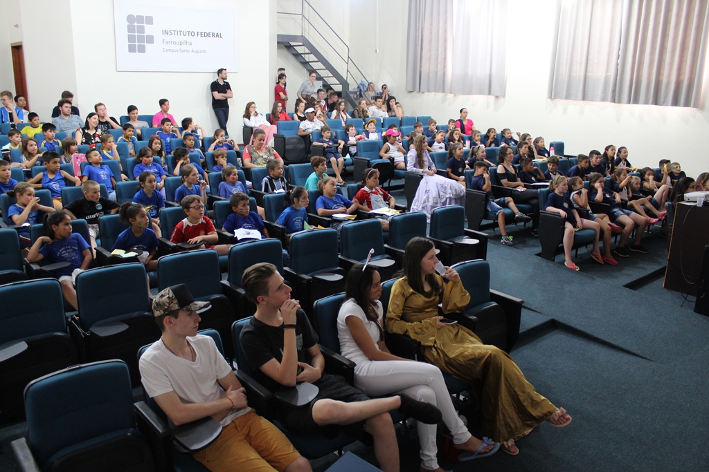 O IFFar – Campus Santo Augusto realizou na tarde de segunda-feira, dia 12 de novembro, o encerramento do Projeto de Extensão “Espanhol e Inglês para crianças da comunidade de Santo Augusto”, desenvolvido pelos professores Miquela Piaia e Edevandro Sabino. As atividades contaram com o apoio dos estudantes do 2º ano do curso técnico em Informática, que criaram histórias infantis e as apresentaram para as crianças em forma de teatro.