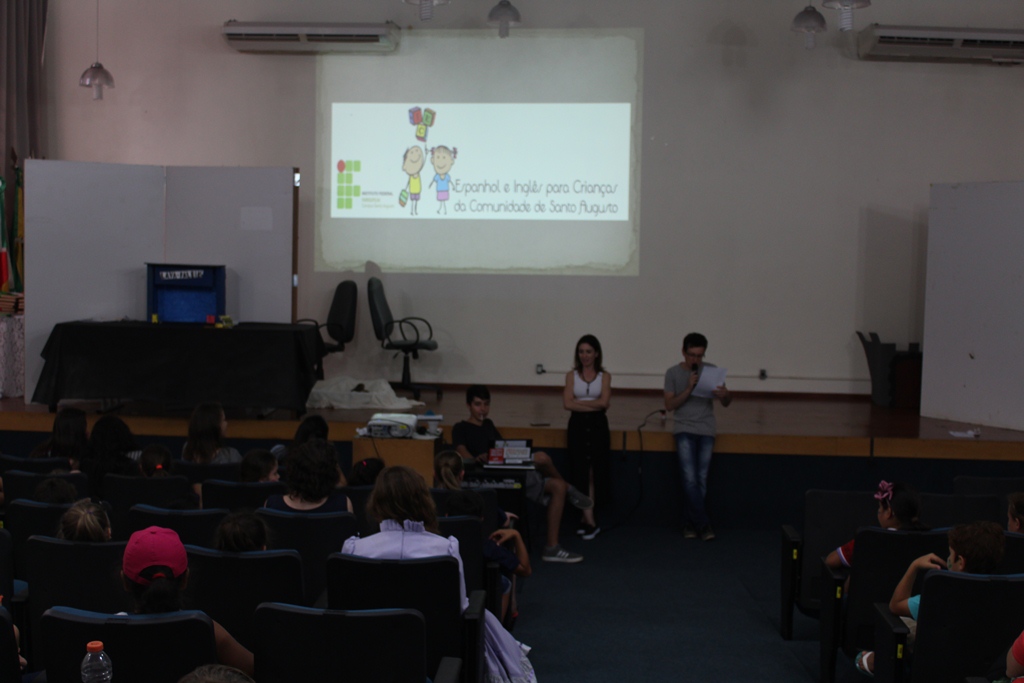 O projeto desenvolvido desde 2015, visa oportunizar a oferta de ensino de língua espanhola e inglesa para crianças do Ensino Fundamental, oriundas de escolas públicas da cidade, através de um trabalho em conjunto com alunos do Ensino Técnico Integrado ao Ensino Médio do IFFar - Campus Santo Augusto. Esse ano foram atendidos cerca de 150 estudantes, dos 2º anos e 3º anos do Ensino Fundamental, das Escolas Municipais de Ensino Fundamental São João e Antônio Liberato e da Escola Estadual de Ensino Médio Santo Augusto.