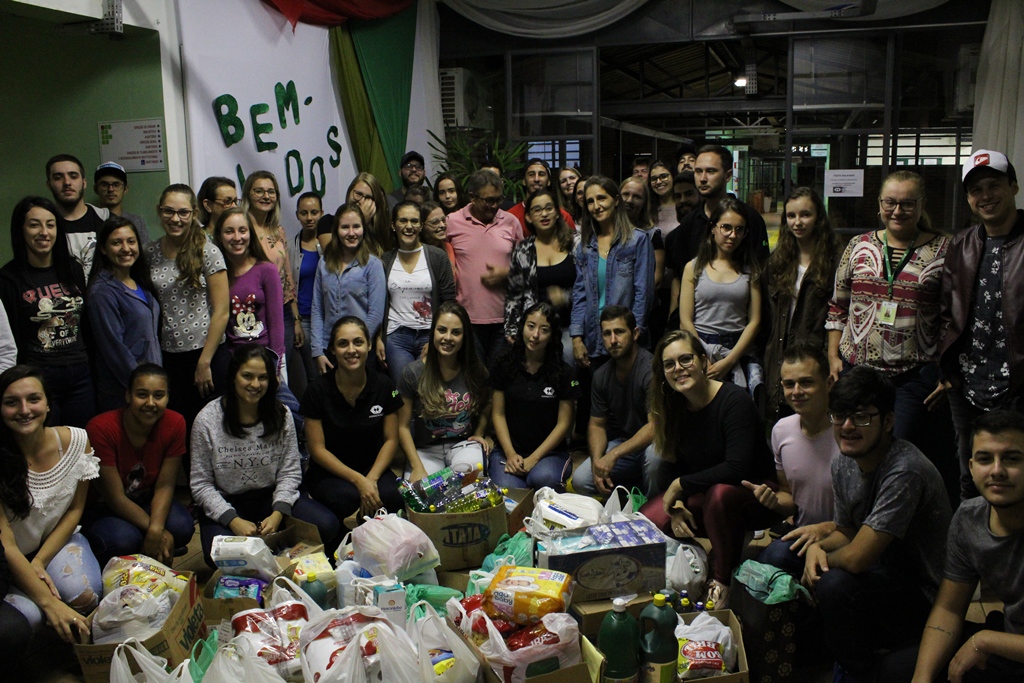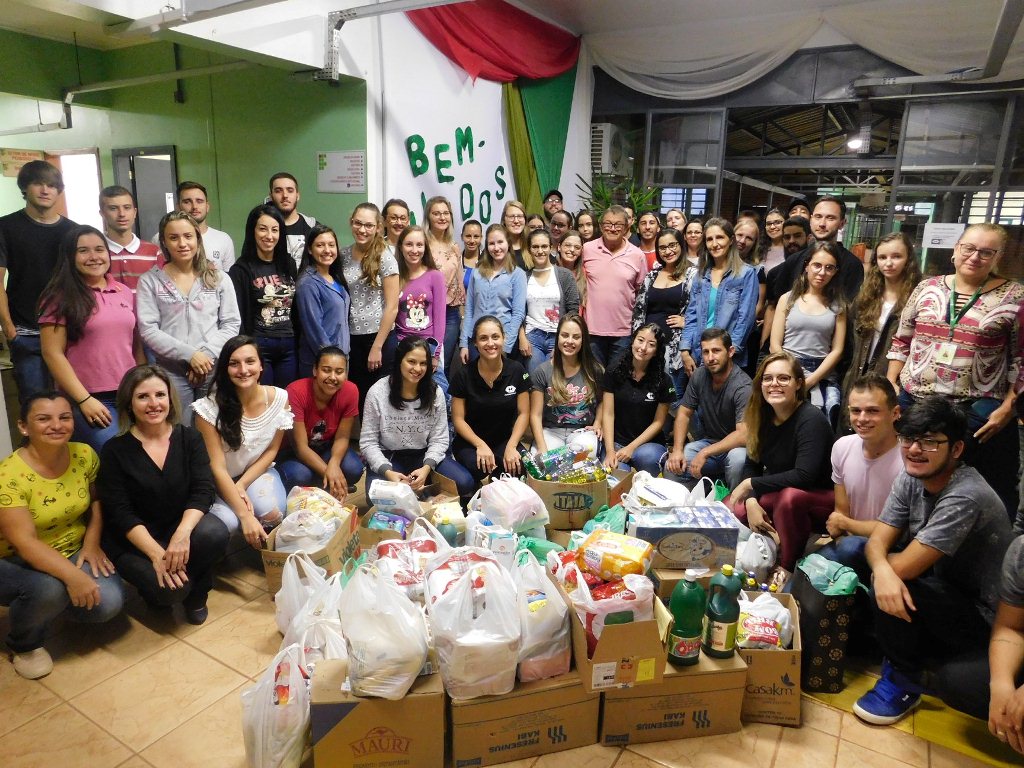 Foram arrecadados ao todo 293 kg de alimentos e 105 itens de materiais de limpeza/higiene, os quais foram entregues na última quarta-feira, dia 13 de março, pelos alunos, professores e coordenação do curso aos representantes do Hospital Bom Pastor, a diretora Marilei Andrighetto e o presidente da Associação Hospitalar, Davi Ceolin, que agradeceram aos veteranos e calouros do Curso de Administração e a todos que colaboraram participando desta ação solidária.