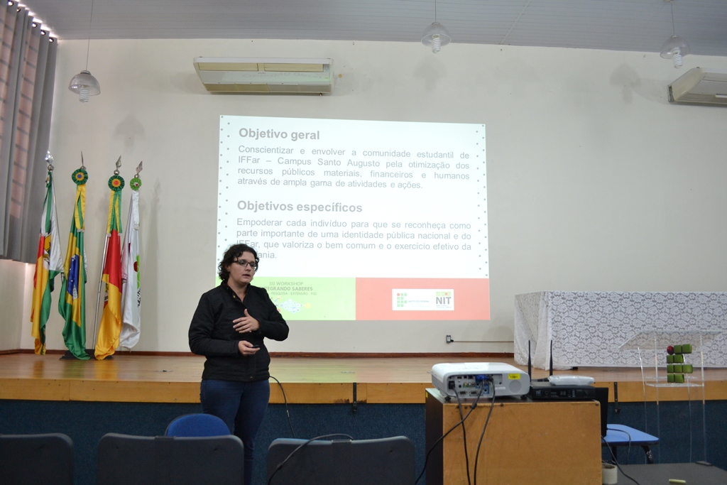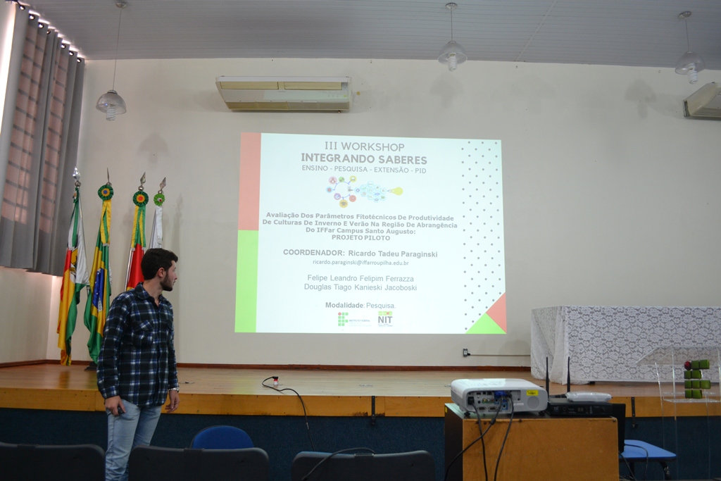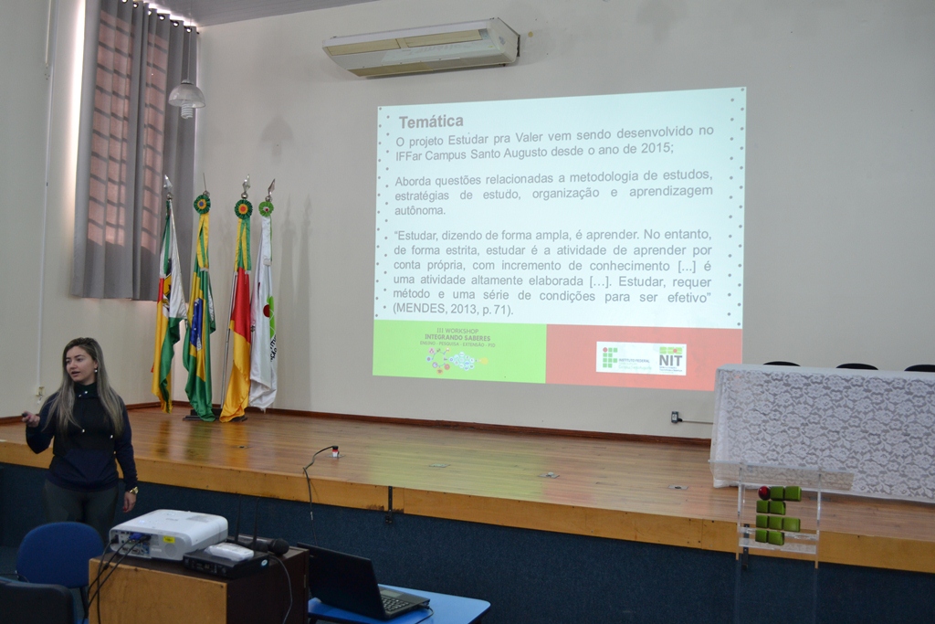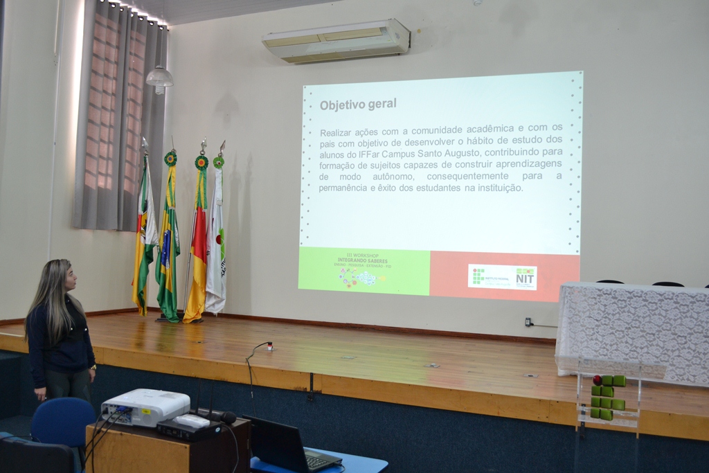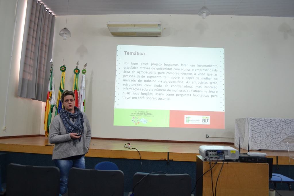 O Núcleo de Inovação e Transferência Tecnológica – NIT, do IFFar - Campus Santo Augusto, promoveu na tarde desta quarta-feira, dia 29 de maio, a 1ª etapa do Workshop Integrando os Saberes. O objetivo do evento é apresentar para a comunidade acadêmica as ações de ensino, pesquisa, extensão e desenvolvimento institucional, que estão sendo realizados pelos alunos e servidores da instituição.