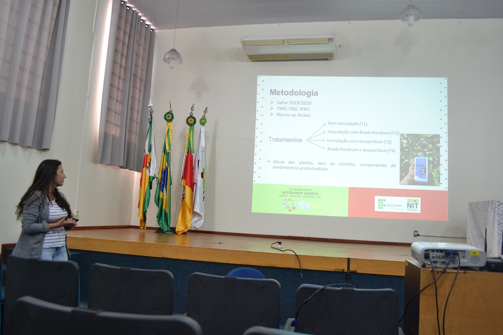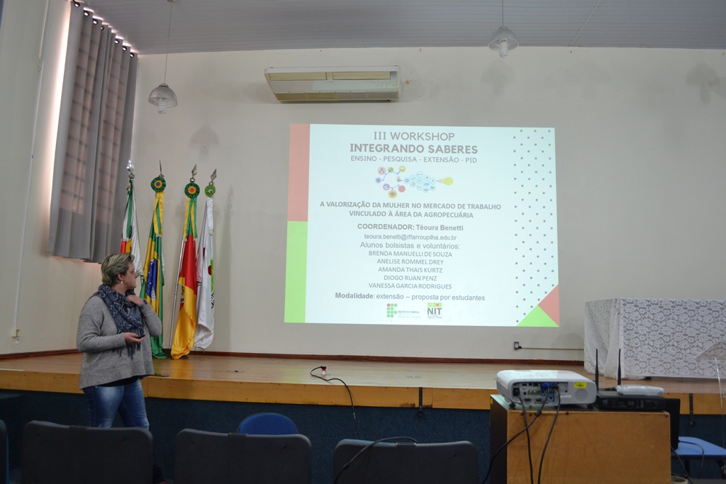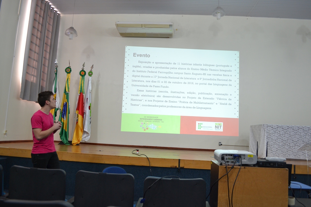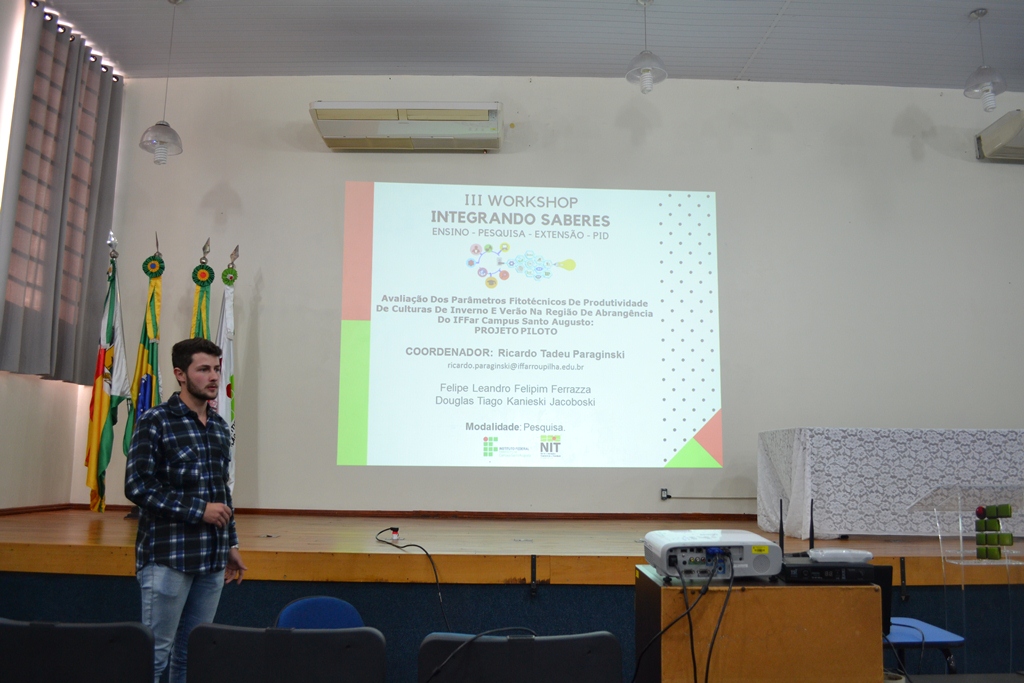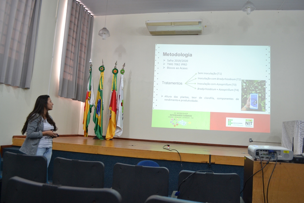 O Núcleo de Inovação e Transferência Tecnológica – NIT, do IFFar - Campus Santo Augusto, promoveu na tarde desta quarta-feira, dia 29 de maio, a 1ª etapa do Workshop Integrando os Saberes. O objetivo do evento é apresentar para a comunidade acadêmica as ações de ensino, pesquisa, extensão e desenvolvimento institucional, que estão sendo realizados pelos alunos e servidores da instituição.
